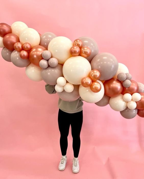 Este elegante arco de balões desconstruído de 2,2 metros é a adição perfeita para qualquer celebração, oferecendo uma forma prática e impressionante de decorar o seu espaço. Com uma combinação de cores harmoniosas em tons neutros e metálicos, ele cabe facilmente em um carro, tornando o transporte um processo simples e conveniente. Esqueça o trabalho de inflar balões em casa; este arco vem pronto para ser exibido, facilitando a montagem no local da sua festa. Disponível exclusivamente para clientes de Criciúma e região, você pode optar por retirá-lo em nossa loja física ou escolher a entrega confortável via Uber, com o frete a ser combinado.