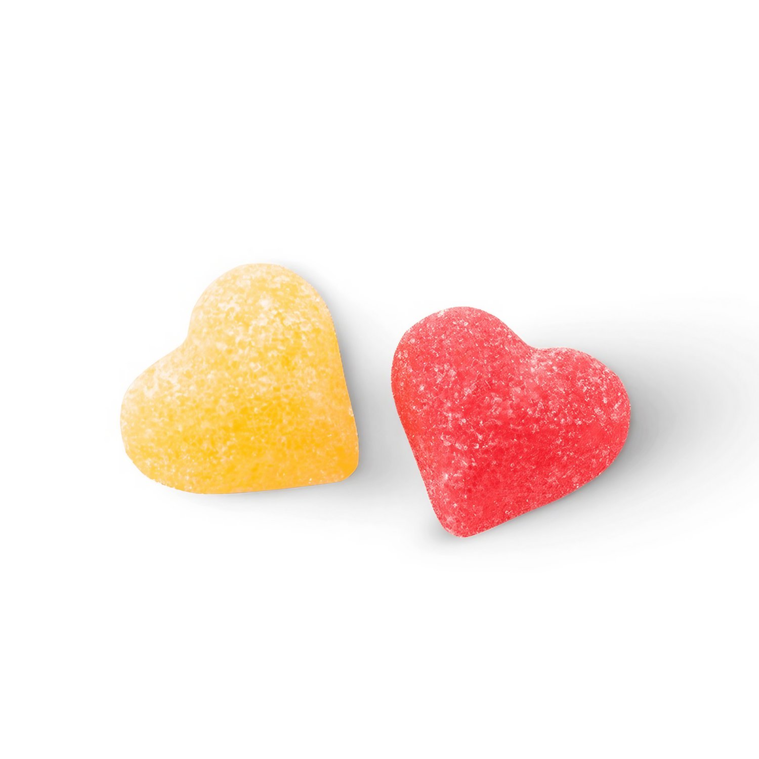 Açúcar, xarope de glicose, amido de milho, água, aromatizantes, reguladores de acidez citrato de sódio e bicarbonato de sódio, gelatina, acidulantes ácido cítrico e ácido málico, corantes artificiais amarelo crepúsculo, tartrazina, vermelho 40, azul brilhante, azul indigotina e corante inorgânico dióxido de titânio.
