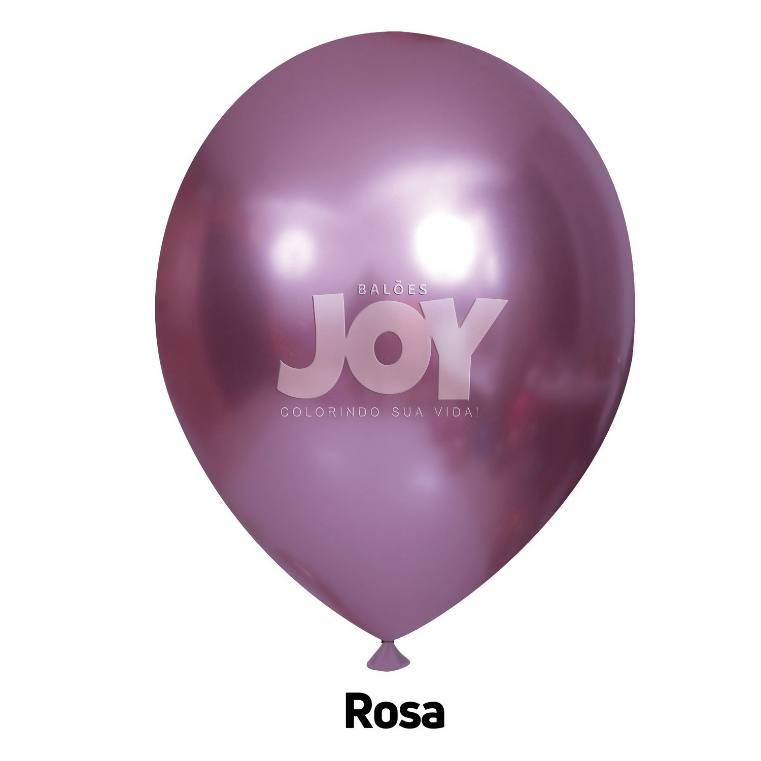 - 25 unidades de Balão Joy Rosa Metalizado de 11 polegadas.