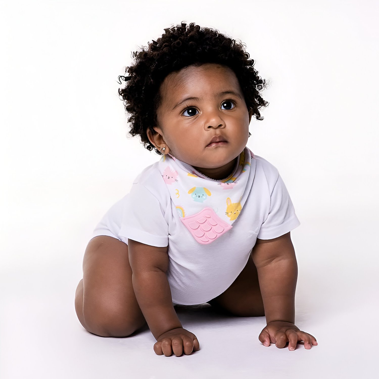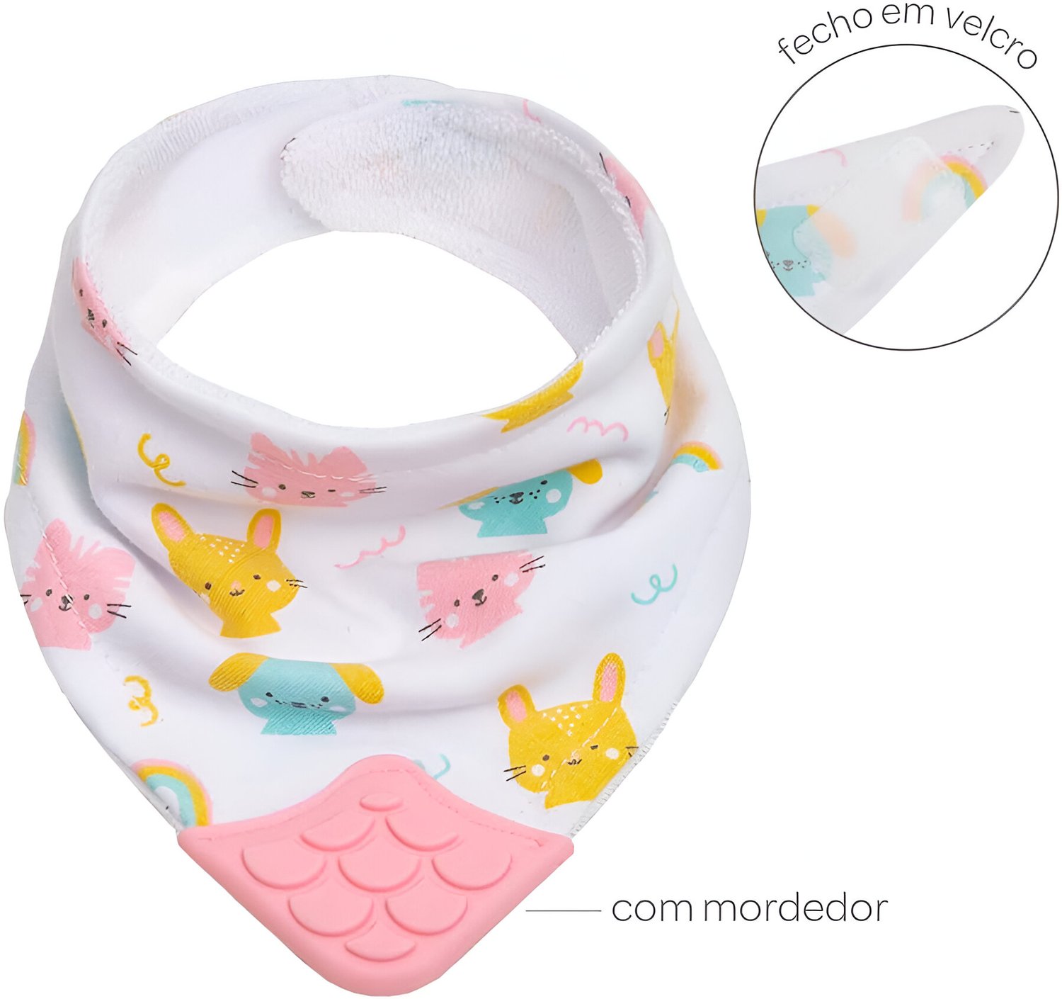 A Bandana com Mordedor da Buba é um acessório charmoso e prático, perfeito para proteger a roupinha do bebê e mantê-lo estiloso. Com estampa divertida e fecho em velcro, a bandana ajusta-se facilmente ao pescoço do pequeno, oferecendo segurança e conforto. Além disso, possui um mordedor na ponta, ideal para aliviar o desconforto da dentição, tornando o acessório ainda mais funcional. Feita em algodão com forro que evita a passagem de umidade, a bandana protege a pele do bebê, mantendo-o seco e confortável durante todo o uso.