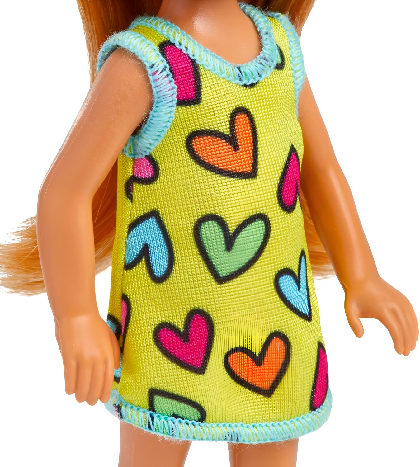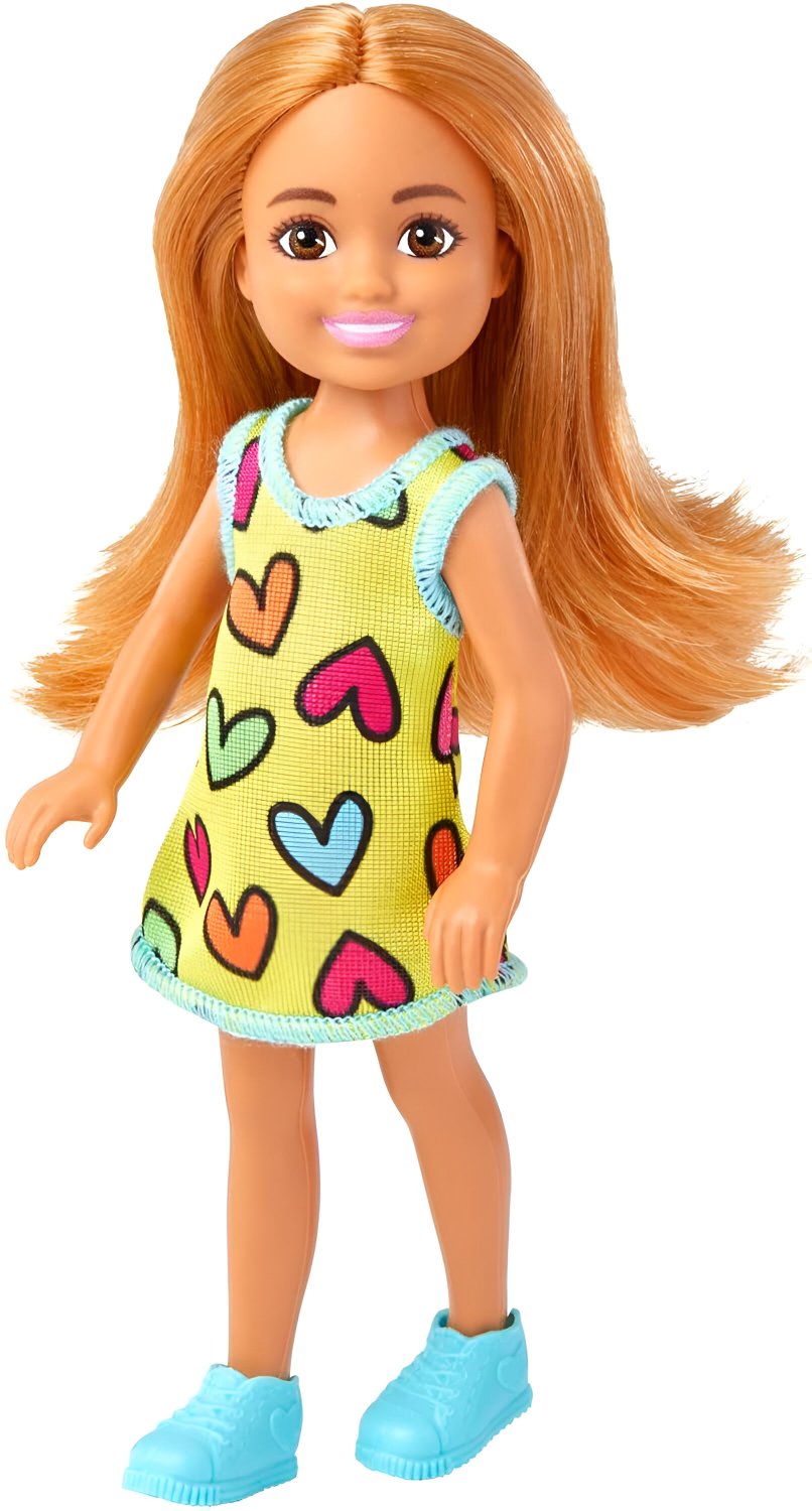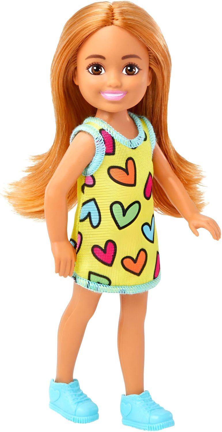 A Boneca Barbie Família Chelsea Club Menina Loira com Vestido de Corações, da Mattel, é perfeita para crianças a partir de 3 anos! Chelsea e seus amigos estão prontos para viver muitas aventuras e histórias divertidas. Com aproximadamente 14 cm de altura, esta adorável boneca veste um lindo vestido amarelo estampado com corações coloridos, trazendo um toque de alegria ao seu visual. Seu cabelo loiro é longo e liso, e os tênis azuis completam o look com muito estilo. Ideal para estimular a imaginação e criar momentos inesquecíveis de brincadeira!