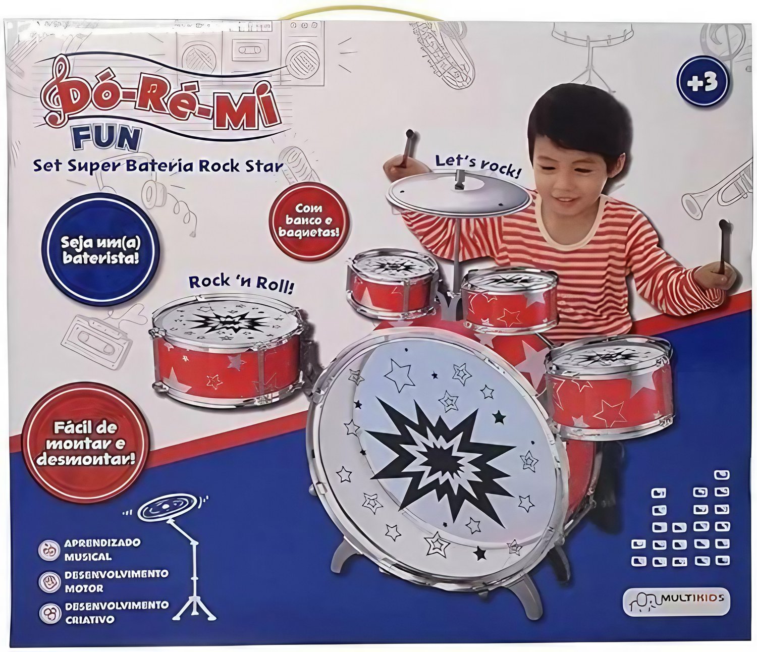 Experimente muita música e diversão com a Bateria Dó Ré Mi Fun da Multikids! Esta bateria é perfeita para transformar qualquer criança em um baterista de verdade. Composta por 5 tambores e um prato, cada um emitindo sons únicos, a bateria é fácil de montar e desmontar. A Bateria Dó Ré Mi Fun estimula o aprendizado musical, contribuindo para o desenvolvimento motor e criativo das crianças.