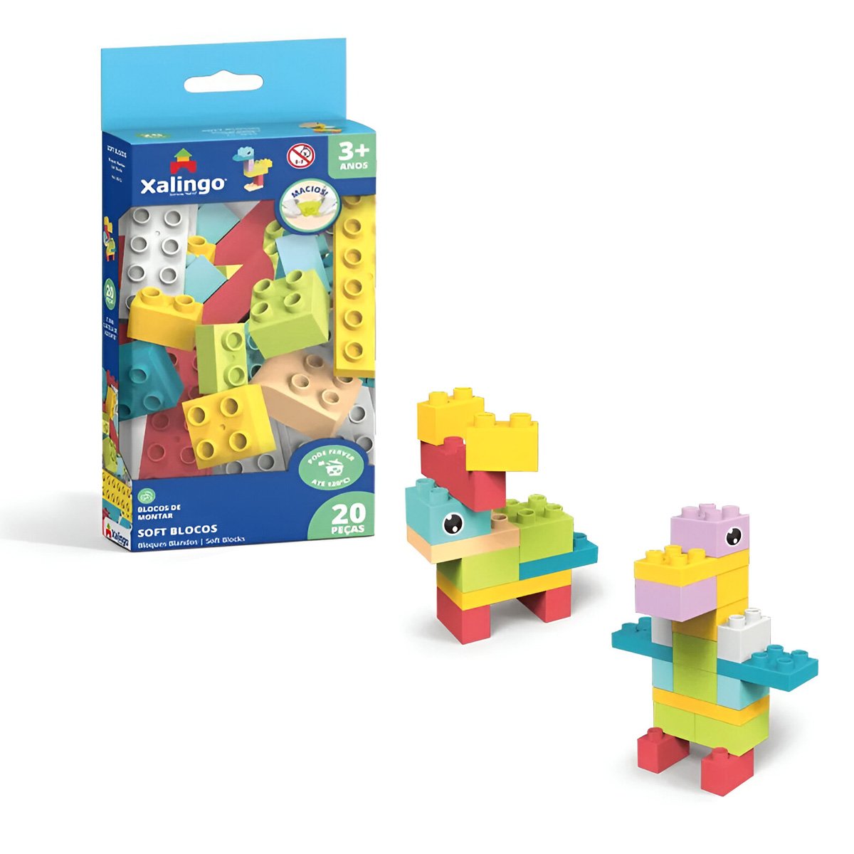 Os Soft Blocks da Xalingo são o conjunto perfeito para diversão e aprendizado, com 20 peças macias e coloridas que estimulam a criatividade e o desenvolvimento motor das crianças. Cada peça é projetada para ser fácil de manusear, ideal para criar estruturas diversas e explorar o mundo da construção.