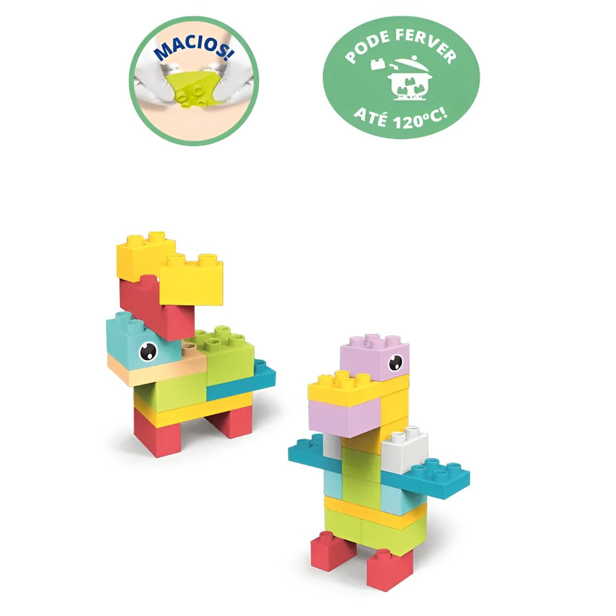 - 20 blocos macios e coloridos, ideais para mãos pequenas.