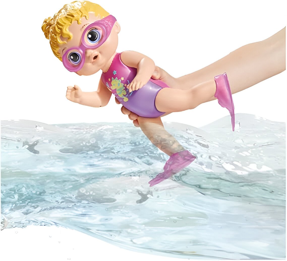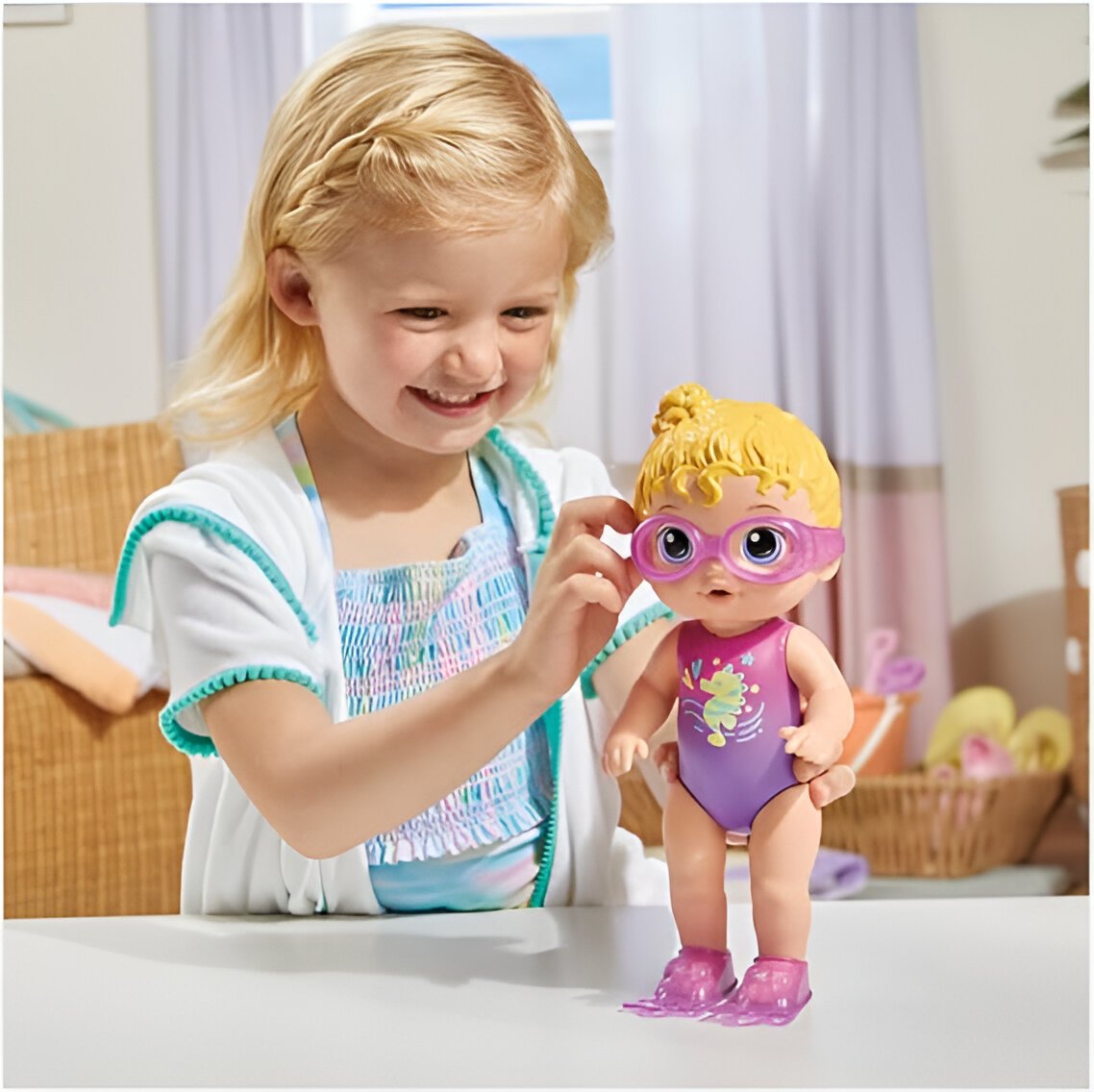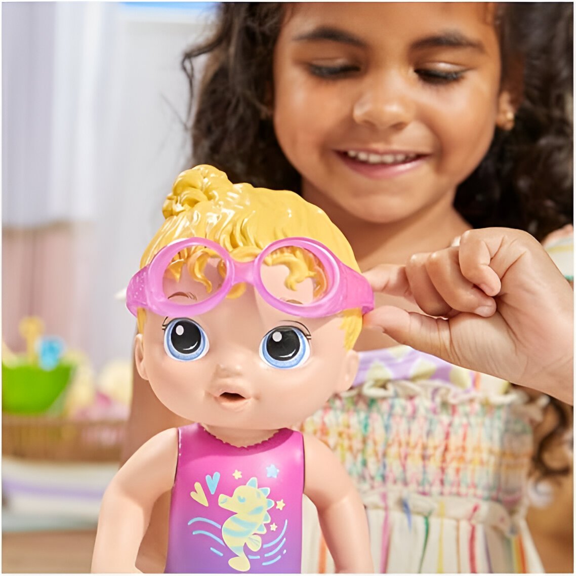 AVENTURAS AQUÁTICAS: Com a boneca Baby Alive Sunny Swimmer para meninos e meninas de 3 anos, as crianças vão se divertir com aventuras na água; ÓCULOS E NADADEIRA: A boneca inclui óculos e 2 nadadeiras para muita diversão na água; BRINCAR DENTRO E FORA D'ÁGUA: Linda boneca para brincadeiras divertidas na água para meninos e meninas a partir dos 3 anos: Boneca articulada com uma linda roupa de banho com estampas de criaturas marinhas para brincadeiras dentro e fora d'água.