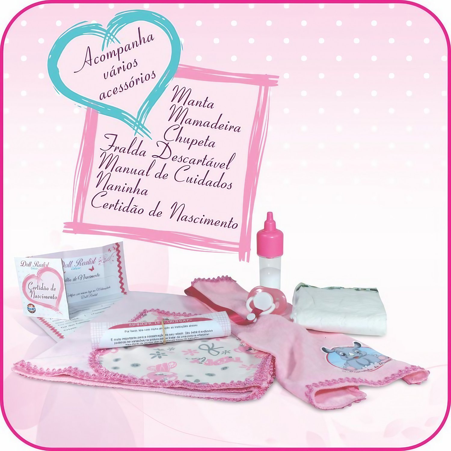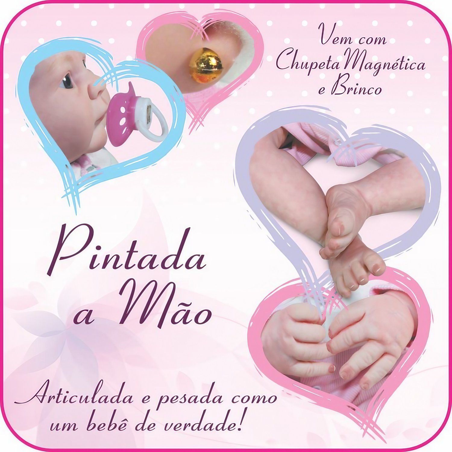 - Peso Equivalente: O peso cuidadosamente ajustado da boneca simula a sensação de segurar um bebê de verdade, proporcionando uma experiência autêntica e imersiva.