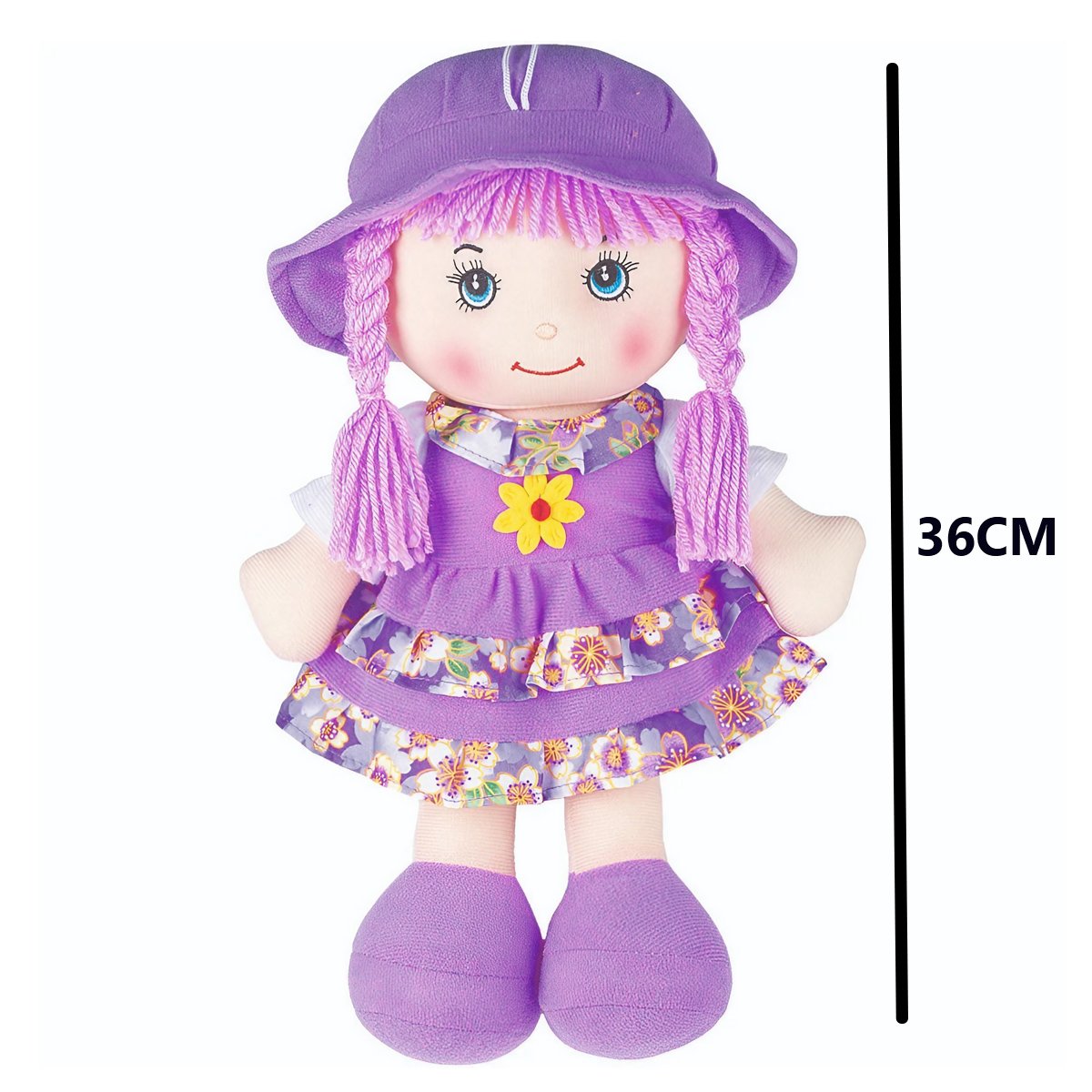 A Boneca Maria Chiquinha Roxa Pano Bebê da Braskit é um mimo em forma de brinquedo. Com suas características marcantes, como cabelos cor-de-rosa, chapéu combinando e um delicado girassol no peito, ela encanta crianças e adultos. Ideal para estimular a criatividade e o mundo da fantasia, essa boneca de pano fofinha será a melhor amiga da sua criança.