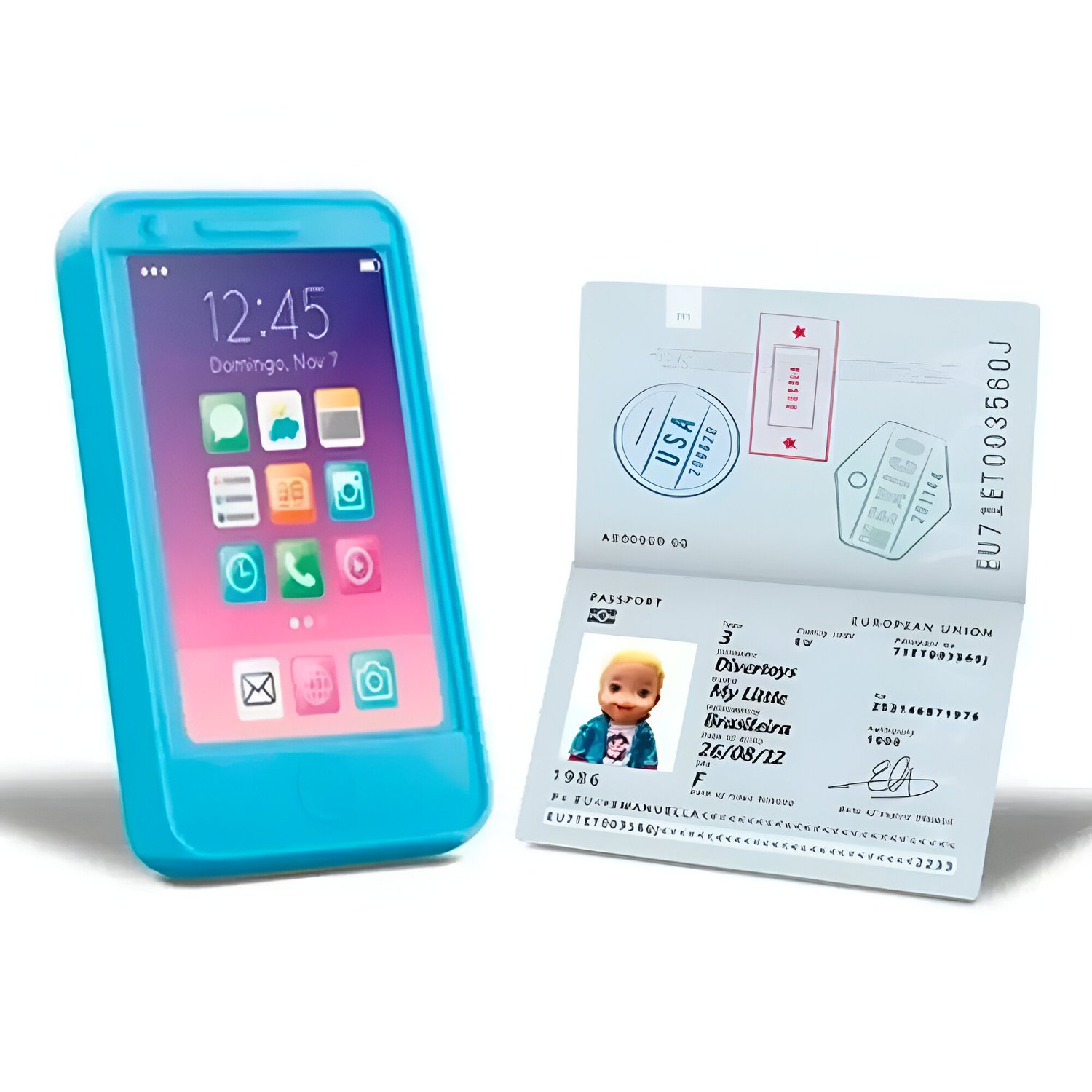 - Itens Lúdicos: Passaporte e passagens de avião para criar histórias e aventuras.