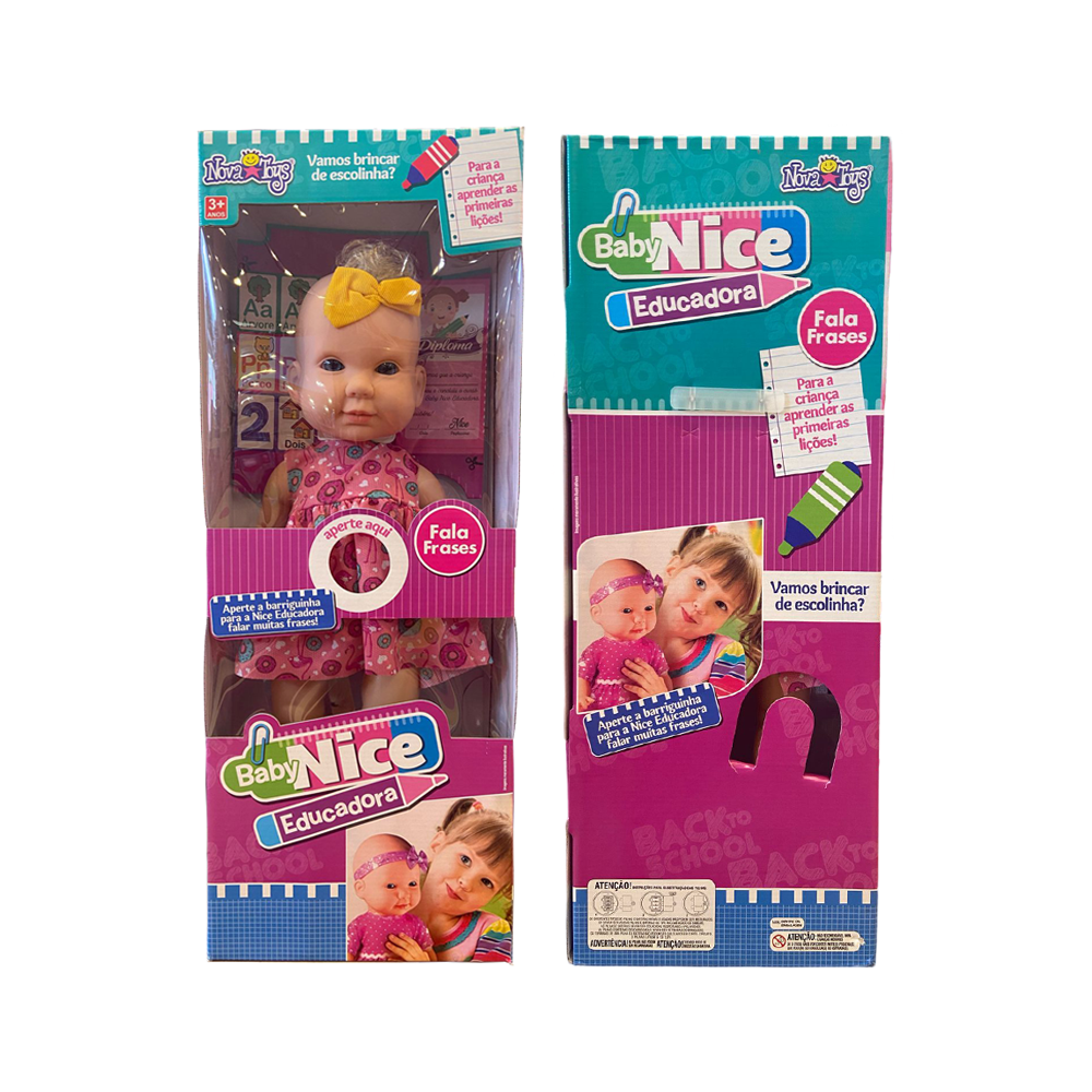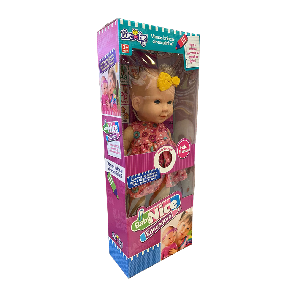 A Boneca Baby Nice Educadora é linda, inteligente e educada. Com apenas um aperto na barriguinha, ela começa a falar, tornando a brincadeira muito mais animada e interativa. Esta boneca é ideal para crianças aprenderem e se divertirem ao mesmo tempo, com as primeiras lições da escolinha.