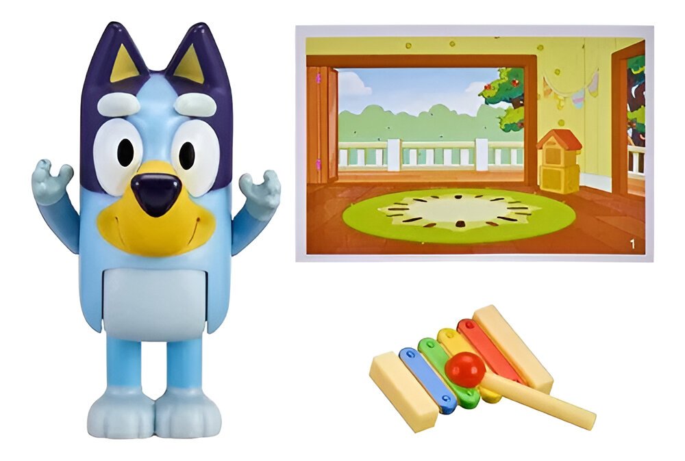 - Inclui mini cartão postal com cena do desenho Bluey.
