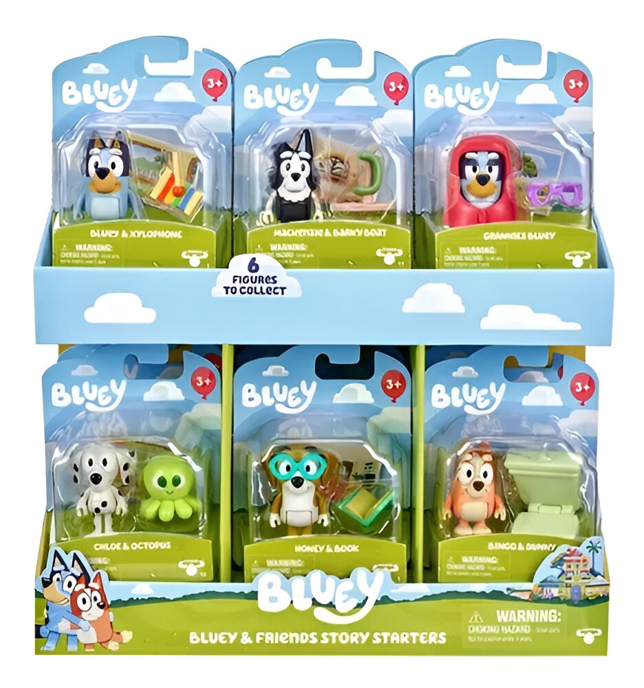 Entre no mundo encantador de Bluey, Bingo e seus amigos com o Starter Single Pack! Inspirado em episódios icônicos da série, cada pacote traz um personagem querido acompanhado de um acessório temático para criar histórias incríveis e repletas de imaginação. Além disso, cada set inclui um mini cartão postal exclusivo com uma cena adorável do programa, perfeito para colecionadores ou fãs que adoram recriar momentos do desenho.