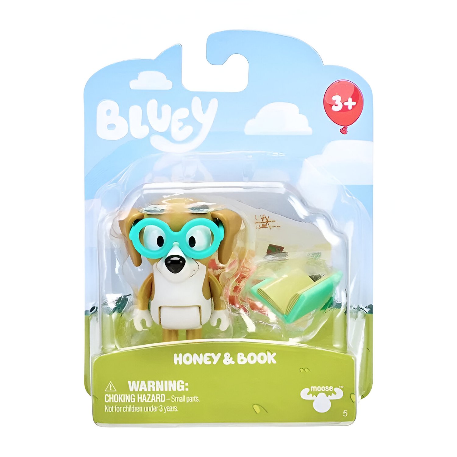 - Personagem Bluey, Bingo ou amigo com acessório temático.