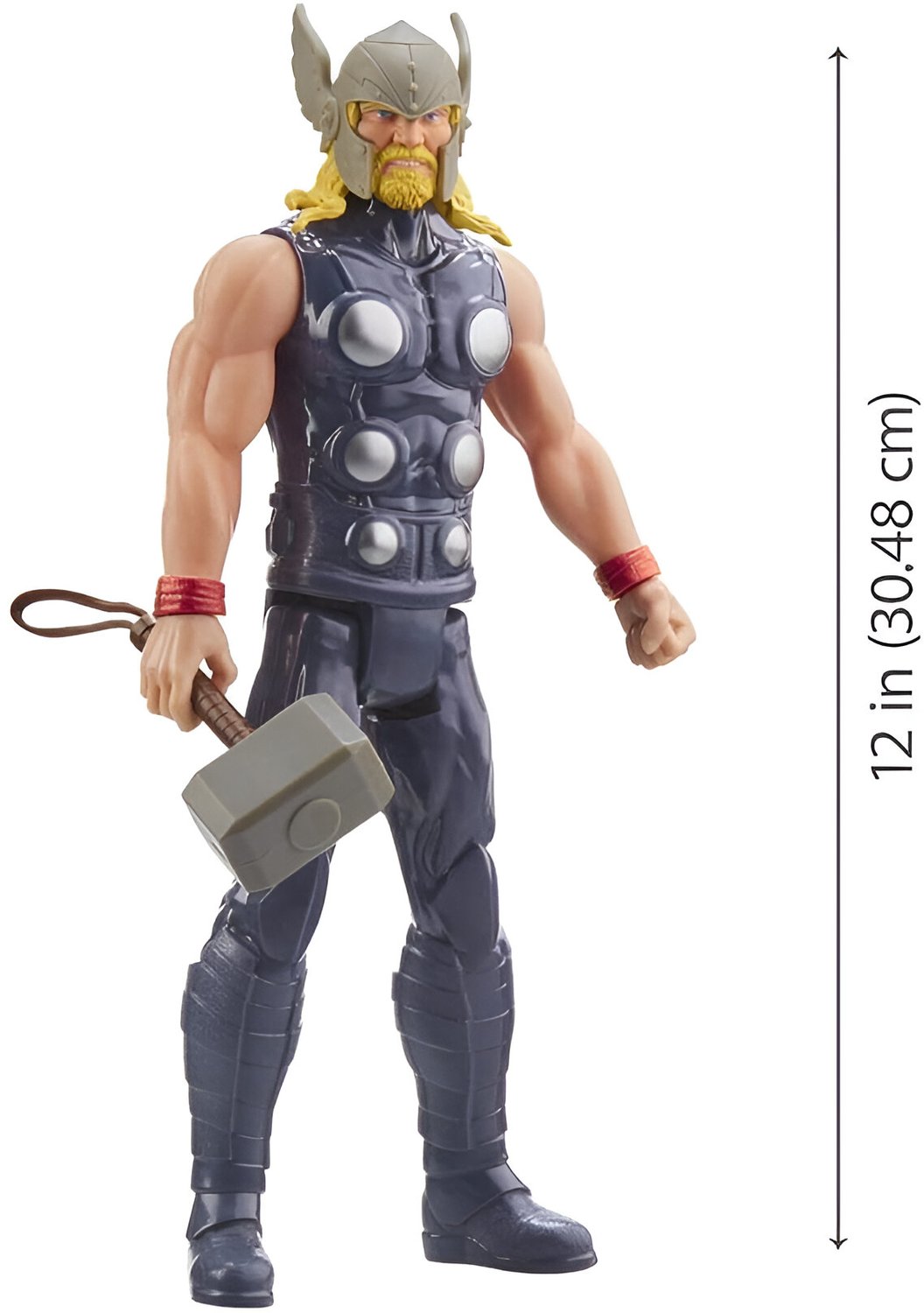 A diversão esta mais que garantida com o Boneco Articulado Marvel Thor Titan Hero Series Blast Gear Hasbro. Thor, deus do trovão, filho de Odin e príncipe de Asgardian usa o poderoso e místico martelo Mjolnir para proteger inocentes em diversos reinos e realidades, seja sozinho ou com os Vingadores. Seu nome vem da inscrição de sua famosa arma.