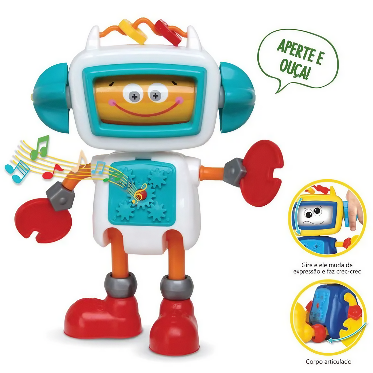 O simpático robô Roby chegou para tornar a brincadeira ainda mais divertida e educativa! Com várias atividades interativas, o Roby incentiva o aprendizado e ajuda no desenvolvimento da coordenação motora das crianças. Além de estimular a criatividade, ele ensina os pequenos a resolver problemas de forma lúdica, enquanto aprendem a ativar sons e explorar suas funções.