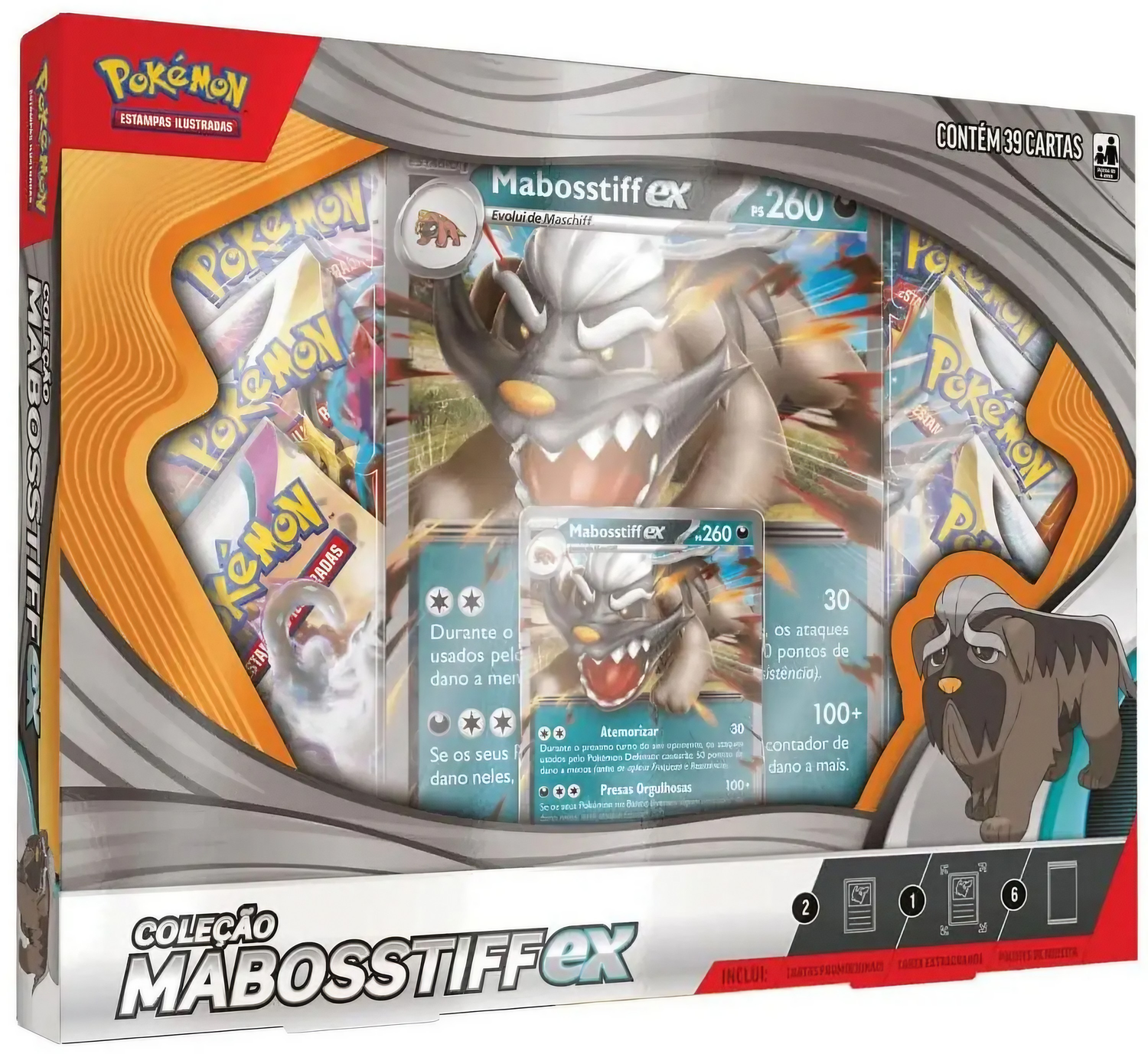 Mabosstiff, conhecido por sua gentileza, adota uma postura ameaçadora ao proteger seus aliados! Junte forças com esse Pokémon leal e desfira golpes aterrorizantes em seus oponentes. Esta coleção é perfeita para treinadores que desejam adicionar um toque de poder e lealdade ao seu deck de Pokémon.