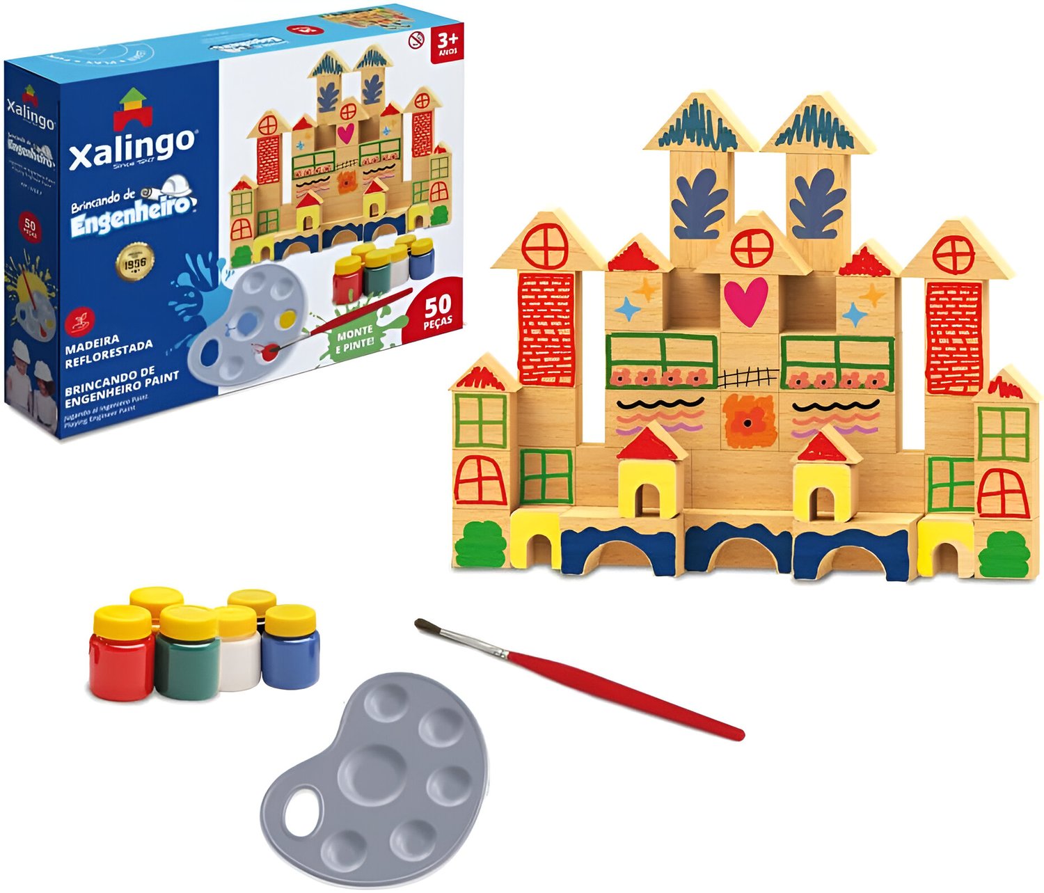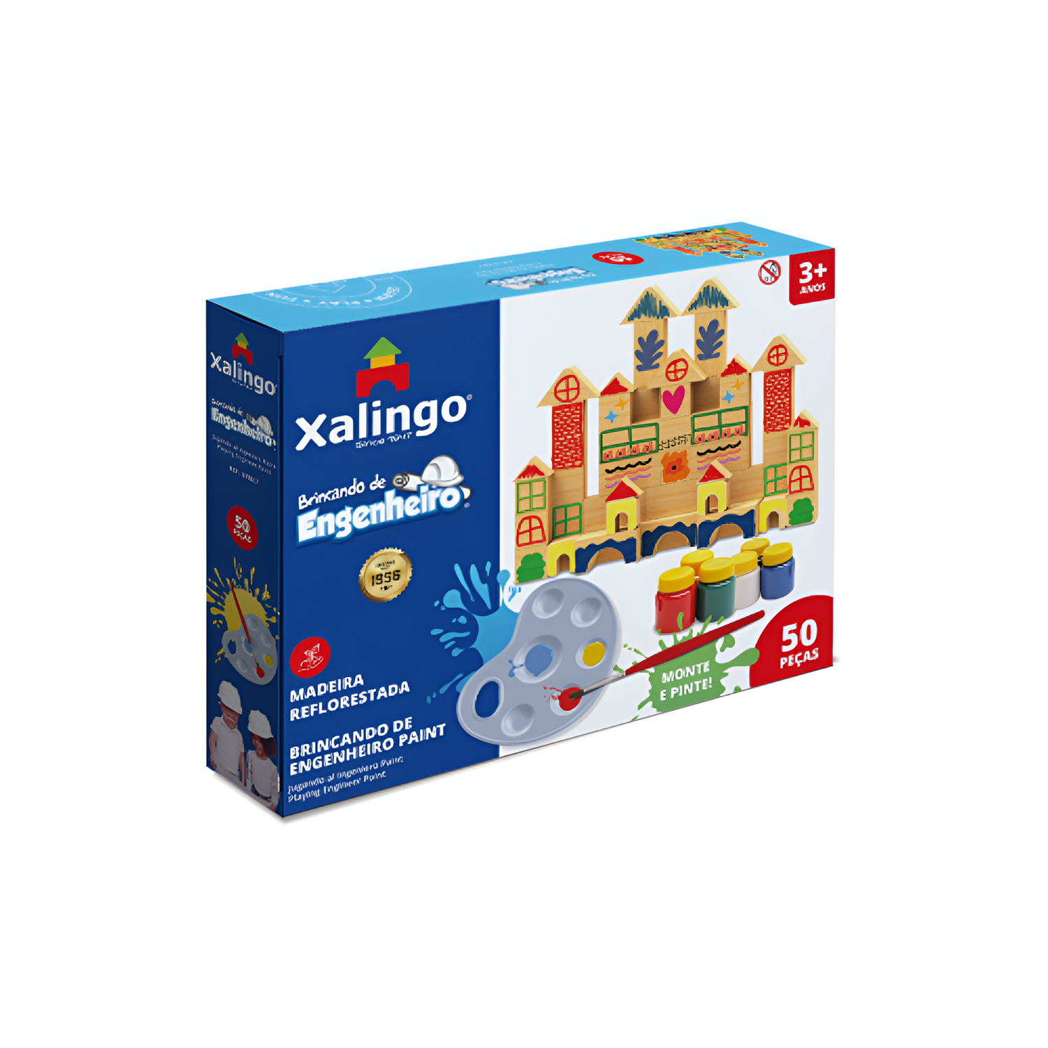 Criatividade, construção e muita cor! O Brincando de Engenheiro Pintura para Colorir da Xalingo é a escolha perfeita para pequenos artistas e construtores. Com 50 peças de madeira reflorestada, o brinquedo estimula montagens criativas e ainda permite que as crianças personalizem tudo com tinta! O kit acompanha 06 tintas guache, 01 pincel e 01 paleta plástica, oferecendo uma experiência completa para pintar, montar e se divertir. Ideal para desenvolver o raciocínio lógico, a coordenação motora, a imaginação e a criatividade.