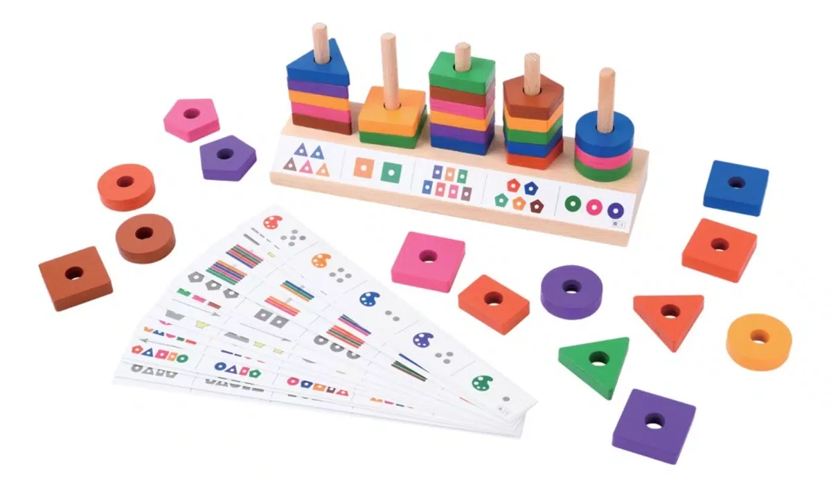 Peças Coloridas: As peças são coloridas e apresentam formas geométricas, tornando o jogo visualmente atrativo e envolvente para as crianças.