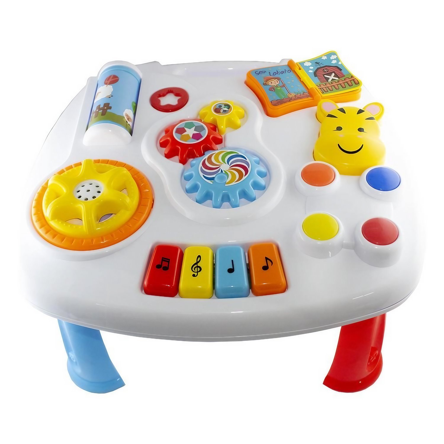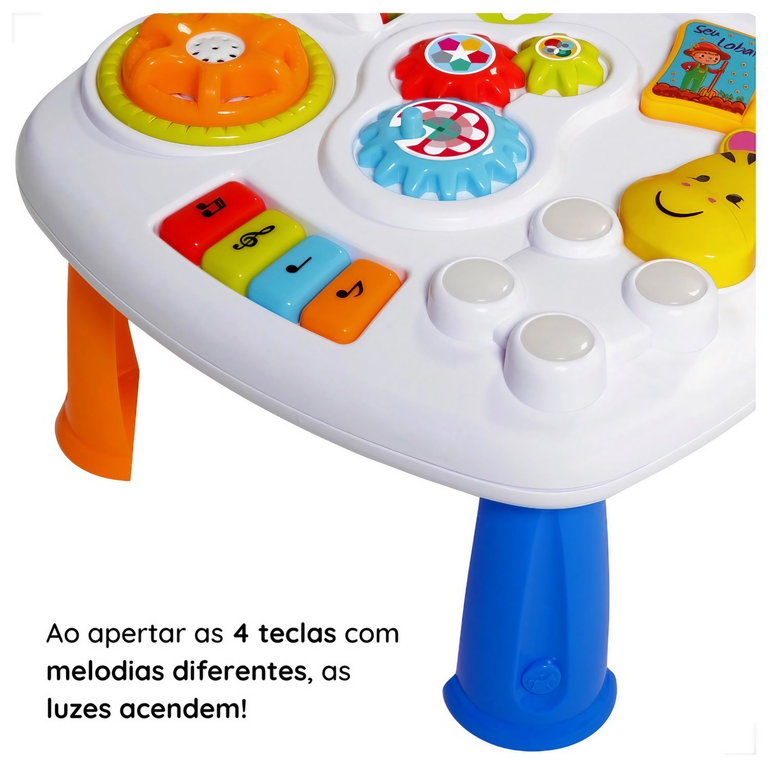 Desenvolvimento da Coordenação e Atenção: Com engrenagens, peças giratórias e teclas que emitem melodias e luzes, o brinquedo contribui para o desenvolvimento da coordenação motora e atenção.