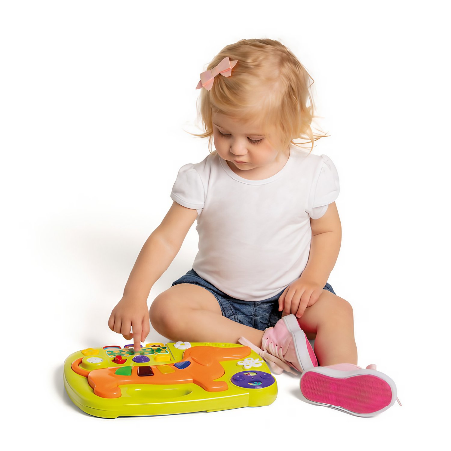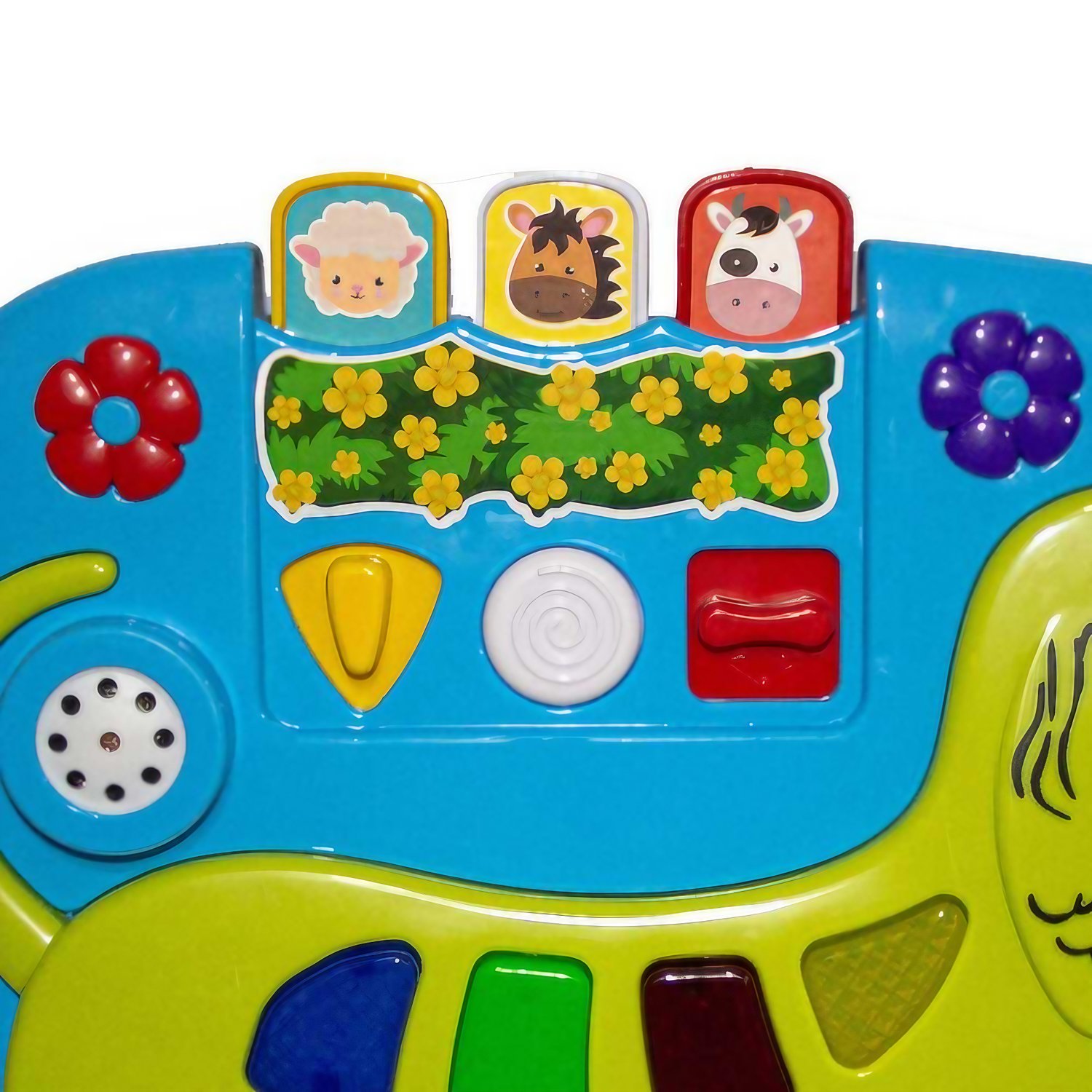 Teclado Musical Estimulante: O brinquedo apresenta um teclado musical que toca várias melodias diferentes, proporcionando uma experiência sonora envolvente.