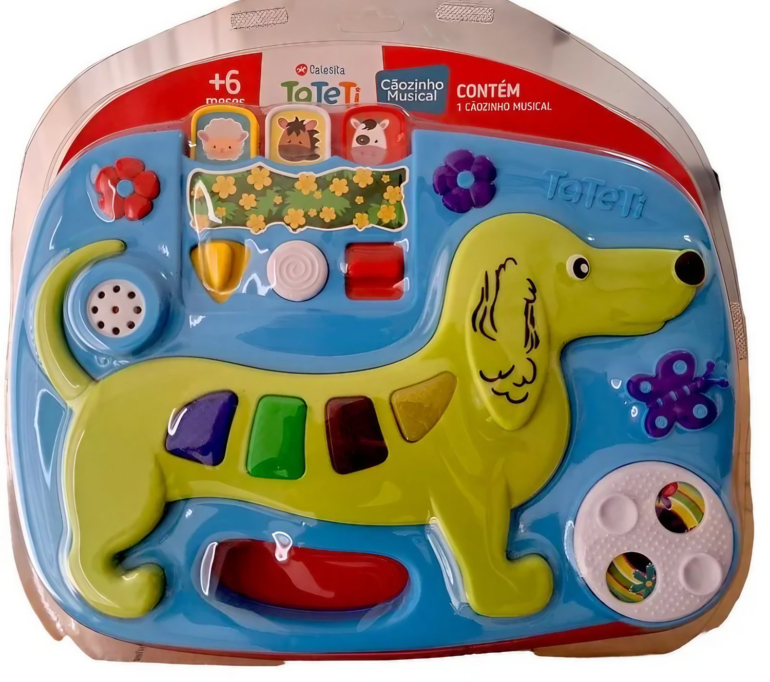 O Brinquedo Infantil Cãozinho Musical Azul Calesita é um teclado musical projetado para estimular todos os sentidos do bebê, proporcionando uma experiência sensorial completa. Além de proporcionar diversão, este brinquedo contribui para o desenvolvimento dos principais sentidos do bebê, oferecendo estímulos auditivos e visuais. Imagens meramente ilustrativas e as cores reais podem variar.