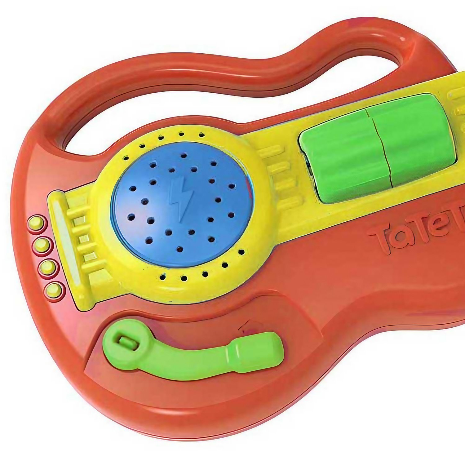 Elemento Giratório com Chocalho Suave: A guitarra possui um elemento giratório que revela um chocalho suave, adicionando uma dimensão tátil à brincadeira.