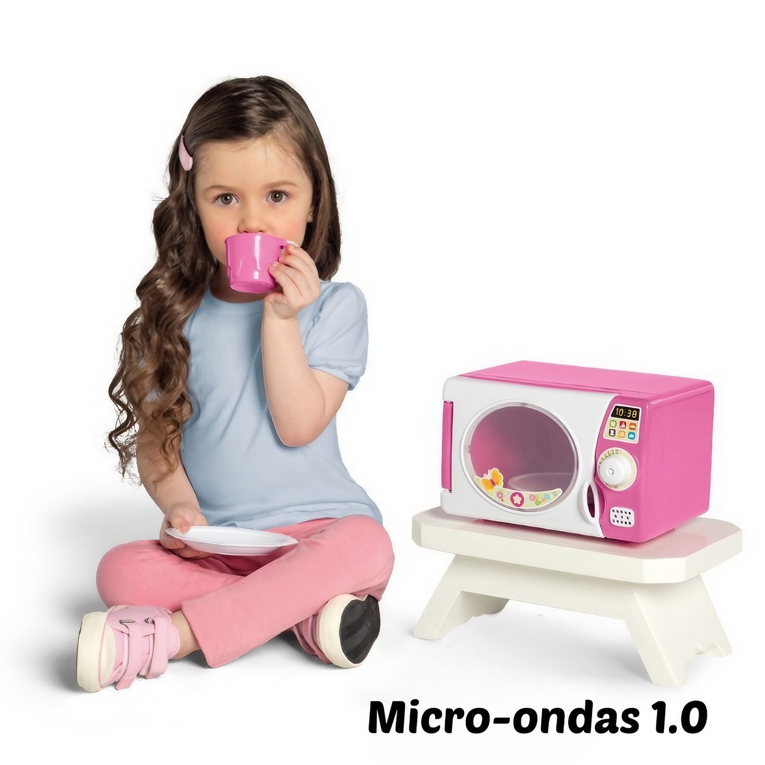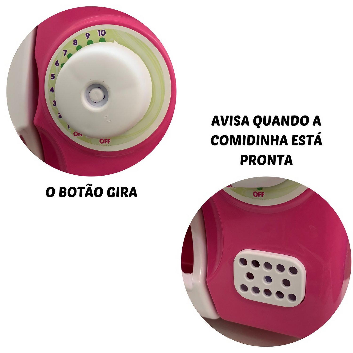 Design Encantador: O micro-ondas apresenta um design cativante que estimula a imaginação das crianças durante as brincadeiras na cozinha.
