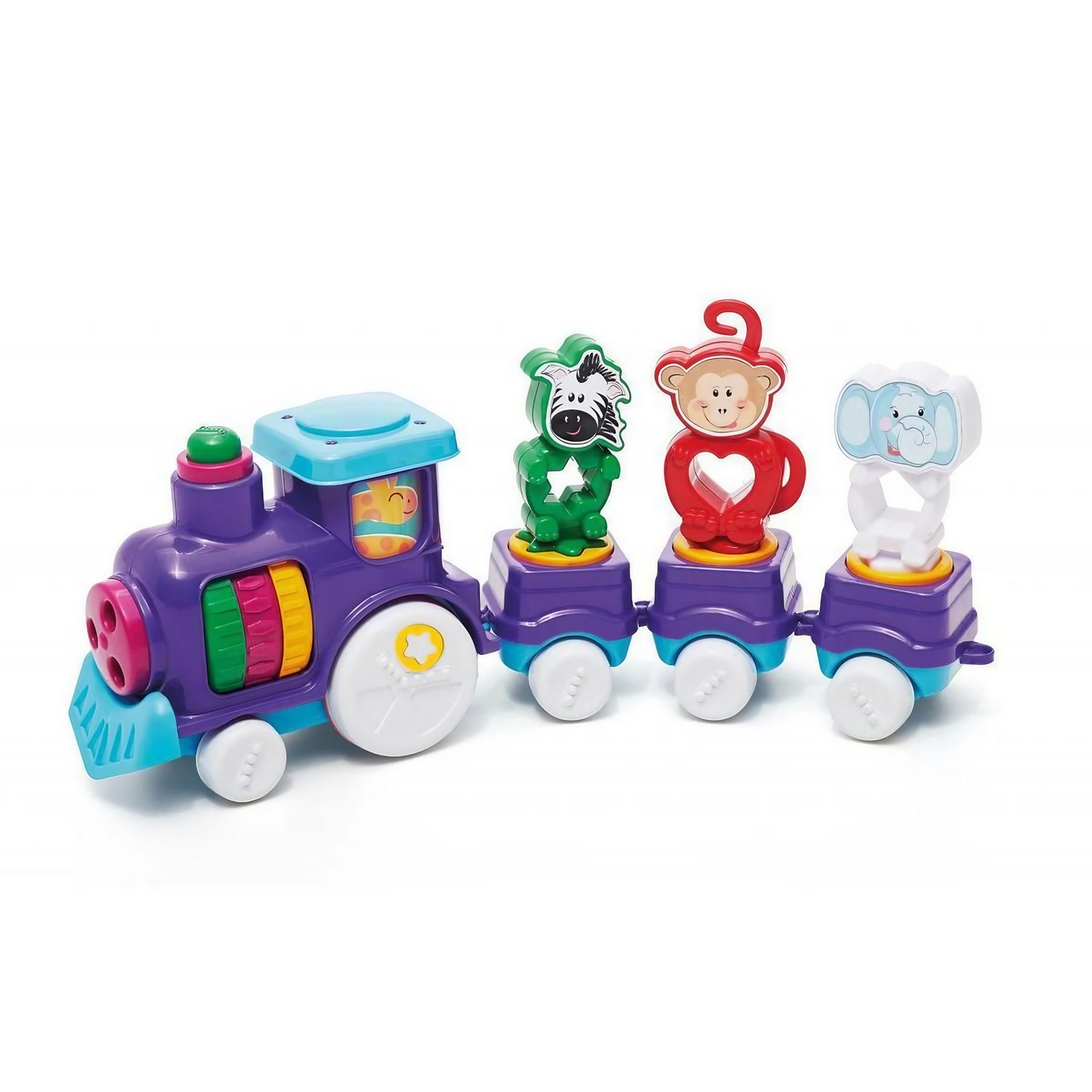 Apresentamos o Brinquedo Zoo Trem Roxo, um brinquedo que estimula a coordenação motora e a habilidade de compor objetos de maneira lúdica e envolvente. Quando o trem está em movimento, os passageiros (os animais do zoo) nos vagões giram, proporcionando uma experiência dinâmica e interativa. A cabine também se movimenta, girando e dando vida aos maquinistas animais. A parte da frente do trem gira, movimentando as engrenagens do motor, e inclui uma buzina na parte superior da locomotiva, imitando o som característico de um trem.