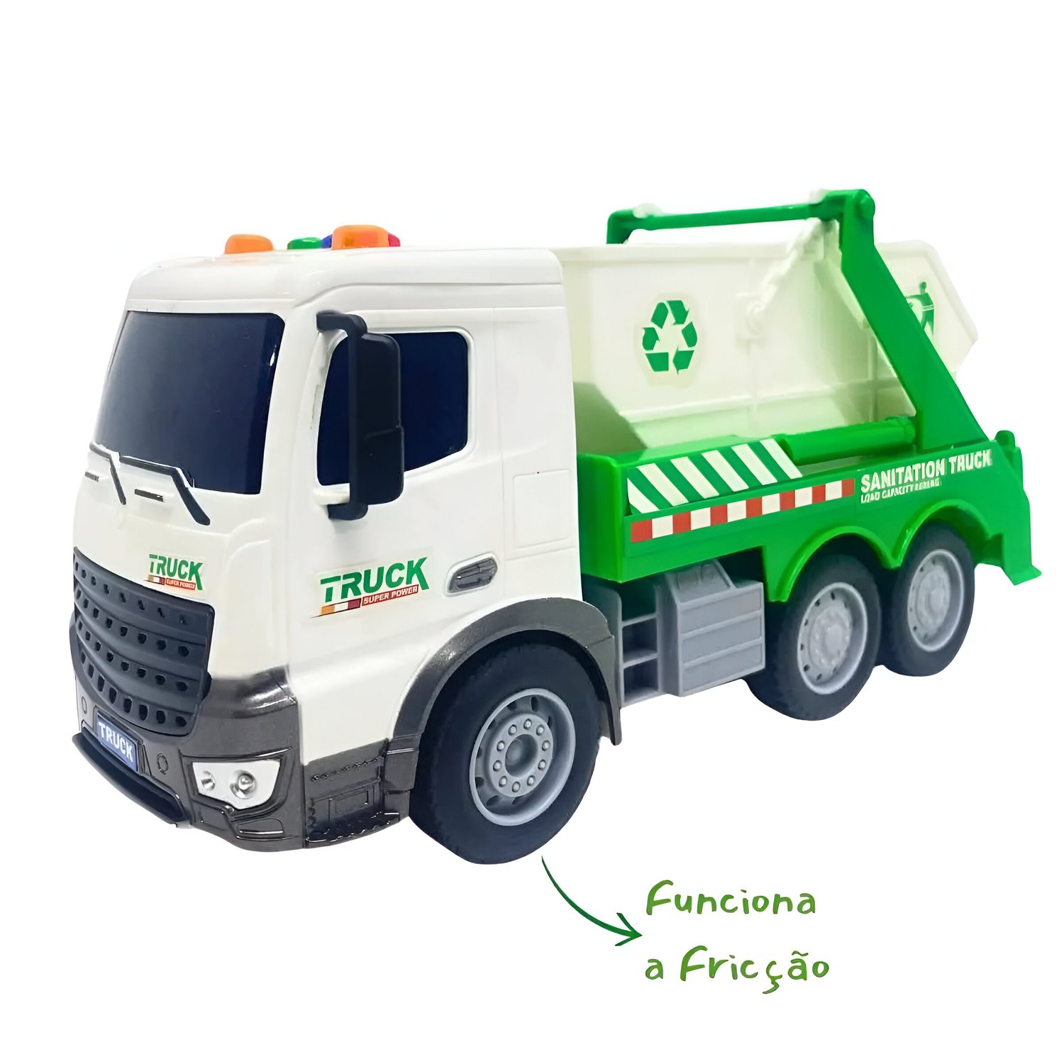 O Caminhão de Lixo Reciclagem é o brinquedo perfeito para crianças explorarem o mundo da coleta de lixo de forma divertida e educativa. Com um design autêntico e rico em detalhes, ele é uma réplica impressionante dos veículos reais, equipado com luzes, som e movimento por fricção.