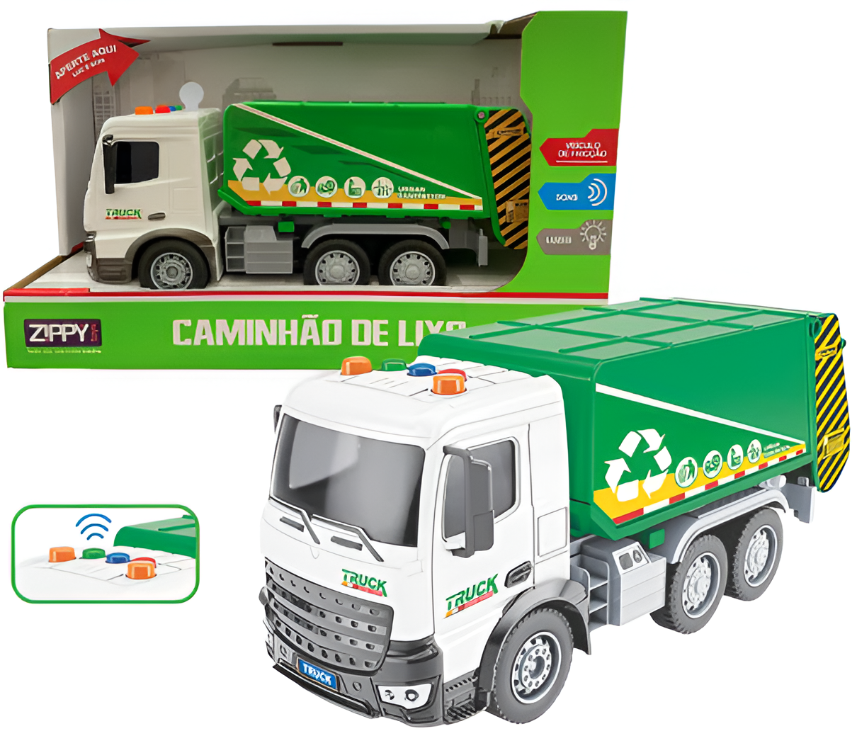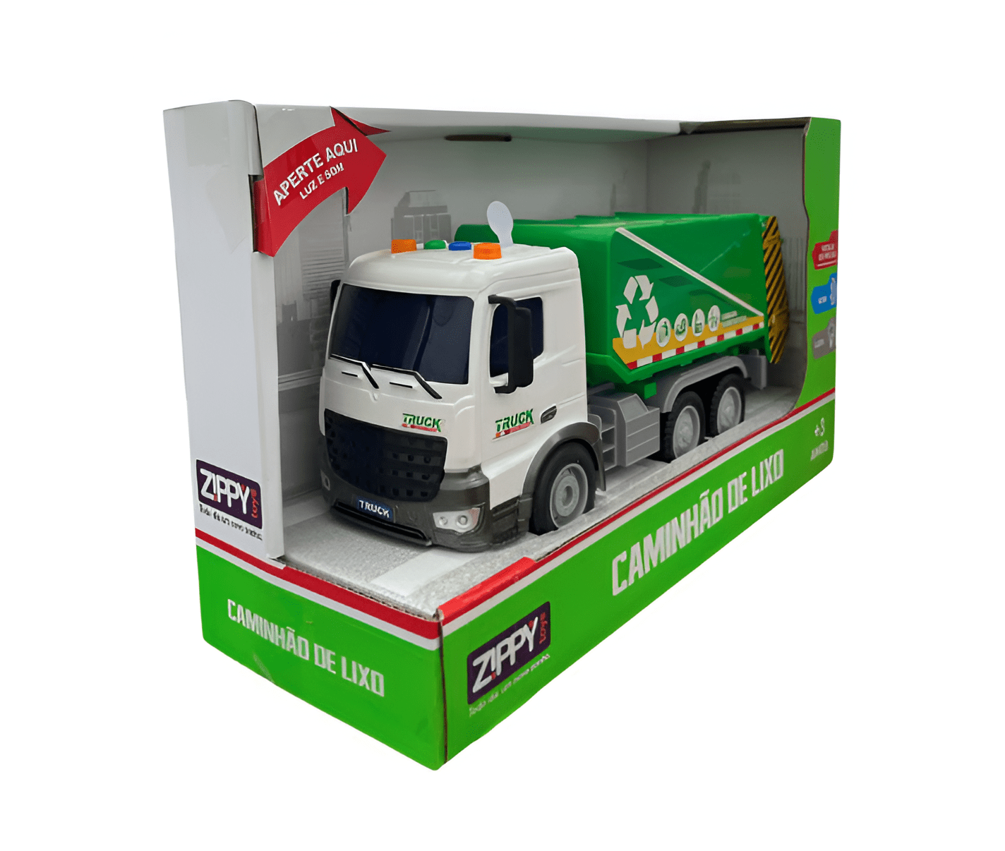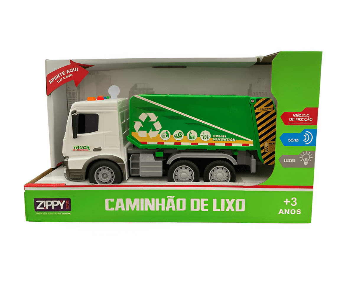 Estimule a criatividade e o senso de responsabilidade das crianças com o Caminhão de Lixo Reciclagem com Fricção, Luz e Som da Zippy Toys! Um brinquedo interativo e educativo que transforma a brincadeira em uma aventura cheia de luzes, sons e consciência ambiental.