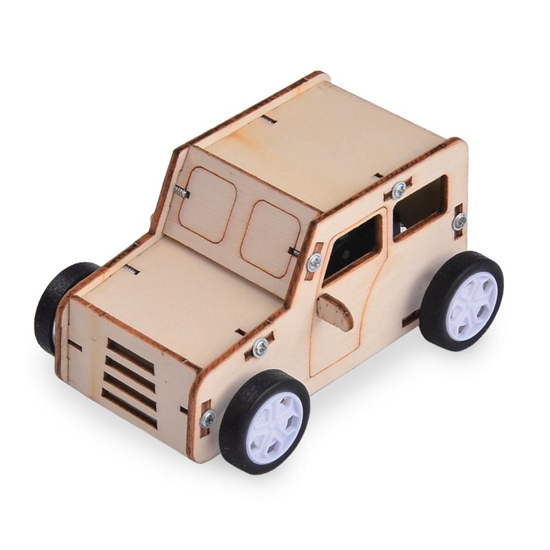Carro A Propulsão Mecânica Em Madeira Polilab Maker Polibrinq
