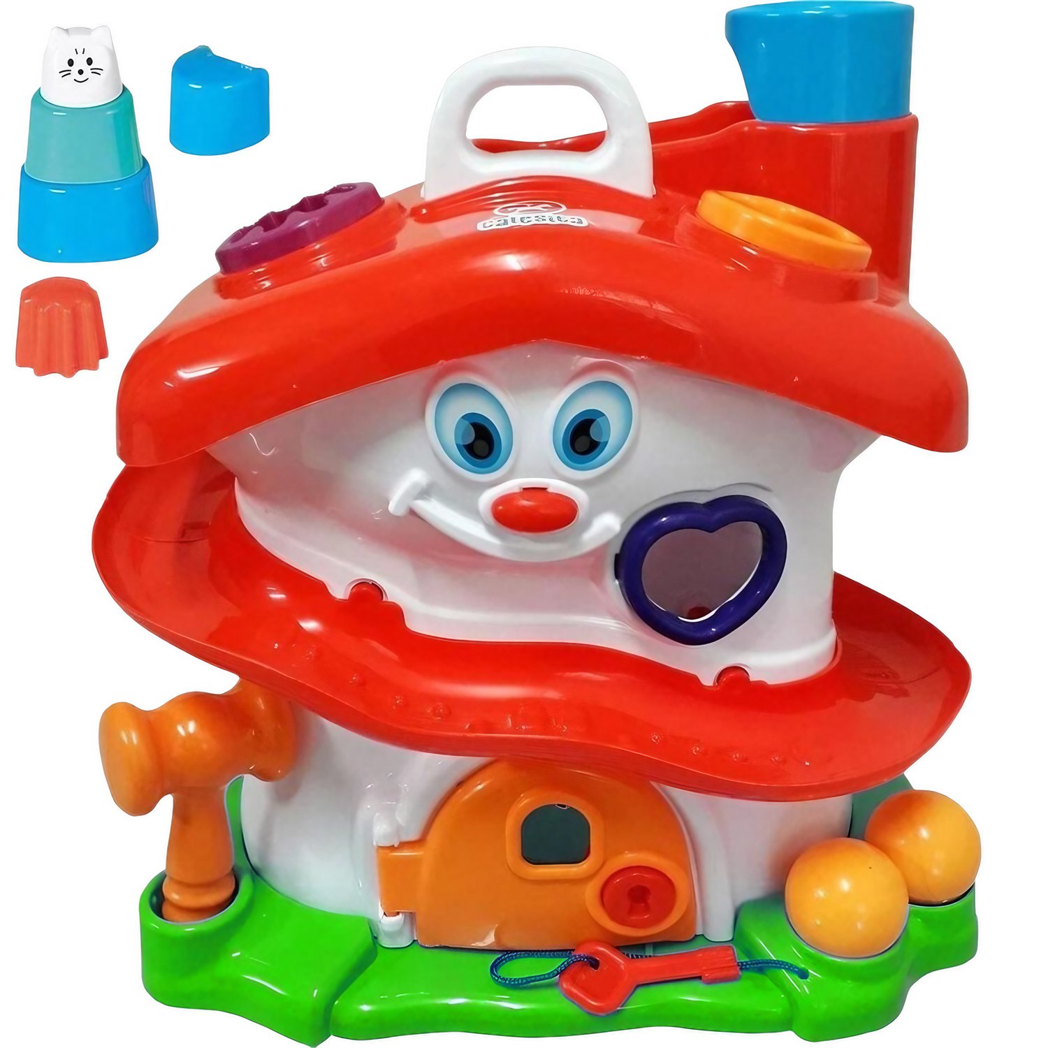 Portinha Interativa: A portinha da casinha abre e fecha com uma chave, proporcionando às crianças a chance de pegar e encaixar os bloquinhos, promovendo habilidades motoras finas e coordenação motora.