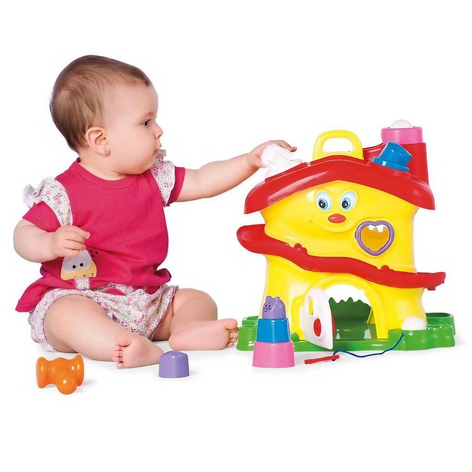 Bolinha Deslizante e Tobogã: Uma bolinha adentra a casinha pela chaminé, deslizando por um tobogã ao redor da casa. Essa atividade estimula a curiosidade e a coordenação visual-motora dos pequenos.