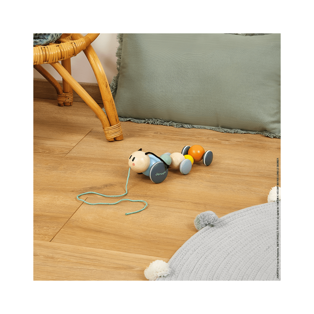 Prepare-se para uma diversão bamboleante com a Centopéia Para Passear Com Rodinhas da Janod! Este adorável brinquedo de madeira vai acompanhar o bebê em suas aventuras diárias, graças às suas rodinhas silenciosas e antenas engraçadas. Parte da coleção Sweet Cocoon, esse brinquedo encantador em cores delicadas é perfeito para estimular os primeiros passos e a coordenação motora com muito charme.