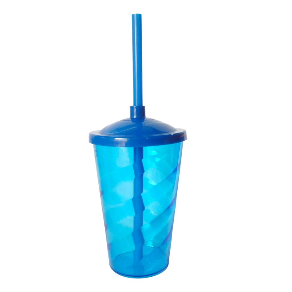 Copo Fest C/Tampa e Canudo Azul Transparente 400ml