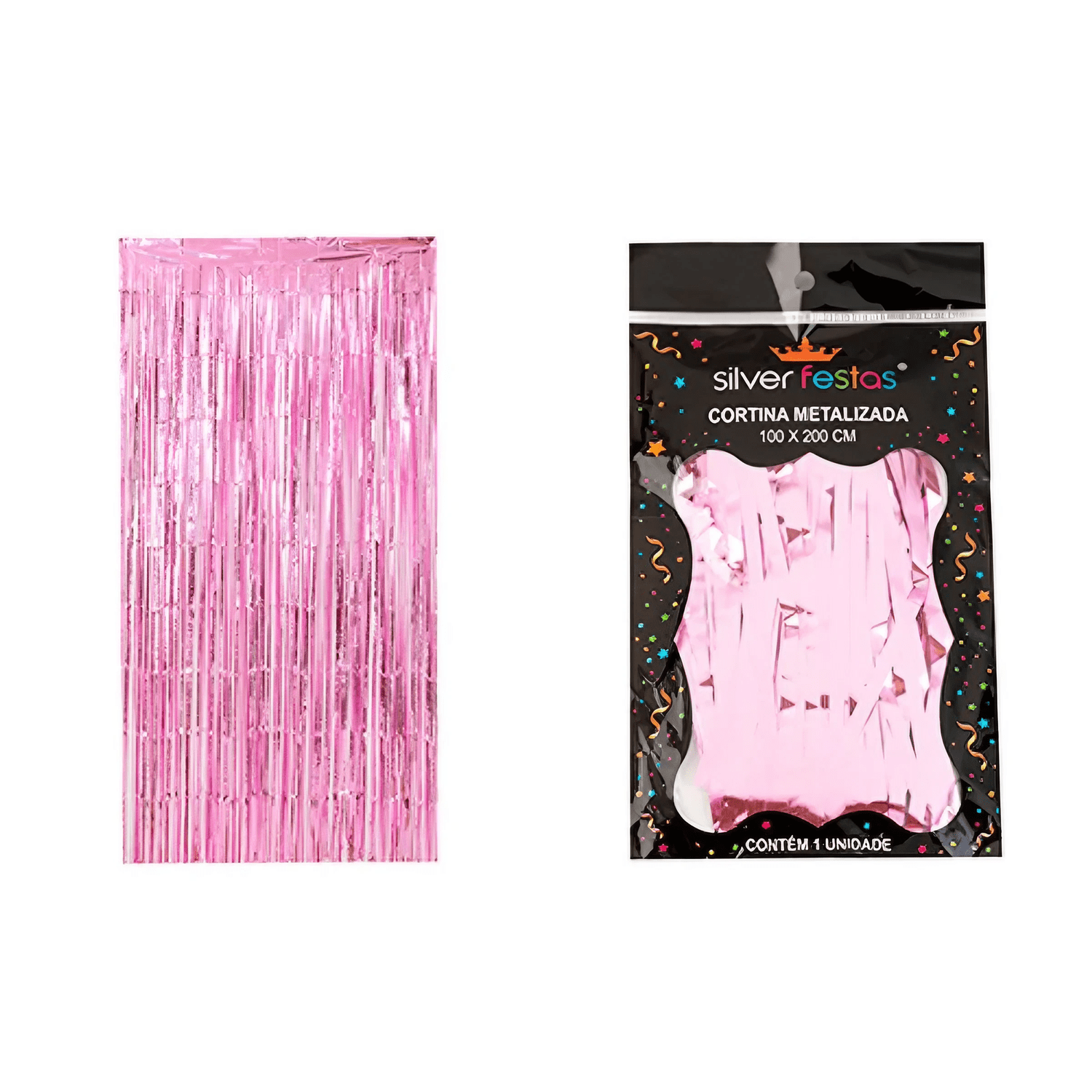- 1 Pacote com 1 cortina metalizada Rosa Claro.
