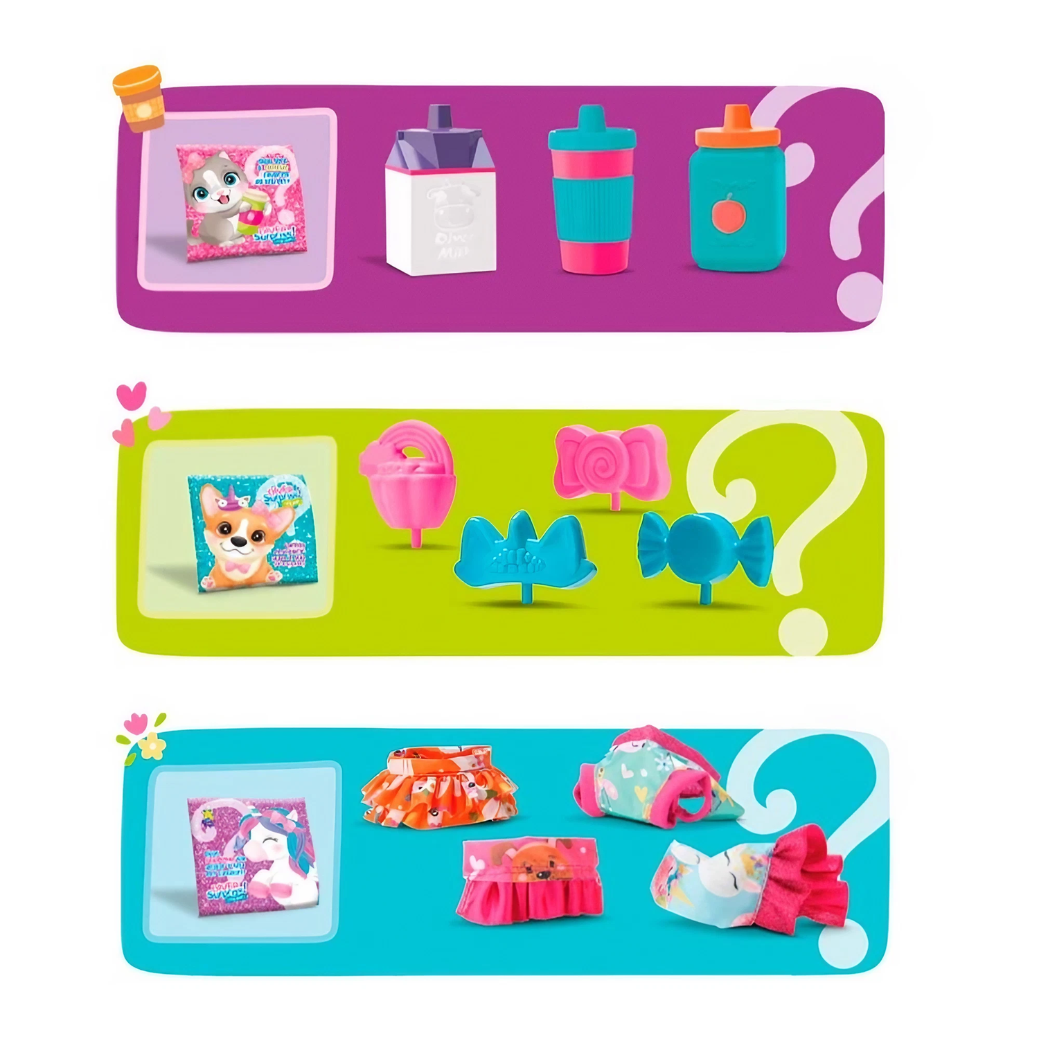 • Surpresas Estilosas: Cada brinquedo vem com 3 saquinhos surpresas que contêm acessórios para deixar seu pet ainda mais estiloso.