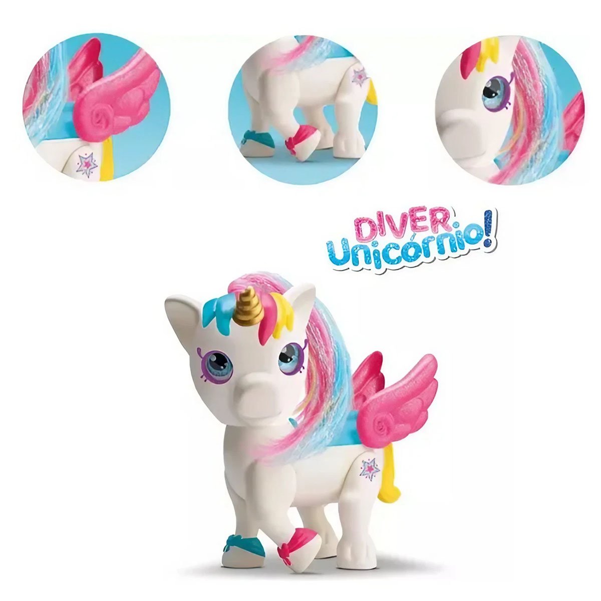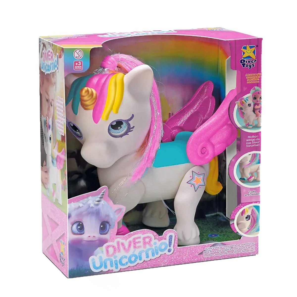 O Unicórnio Diver Surprise está pronto para se aventurar pela floresta mágica com você e ser o melhor amigo da sua Diver Surprise! Este encantador unicórnio possui o corpo todo articulado, fio prata no cabelo e asas com glitter, tornando-o perfeito para horas de diversão e fantasia.