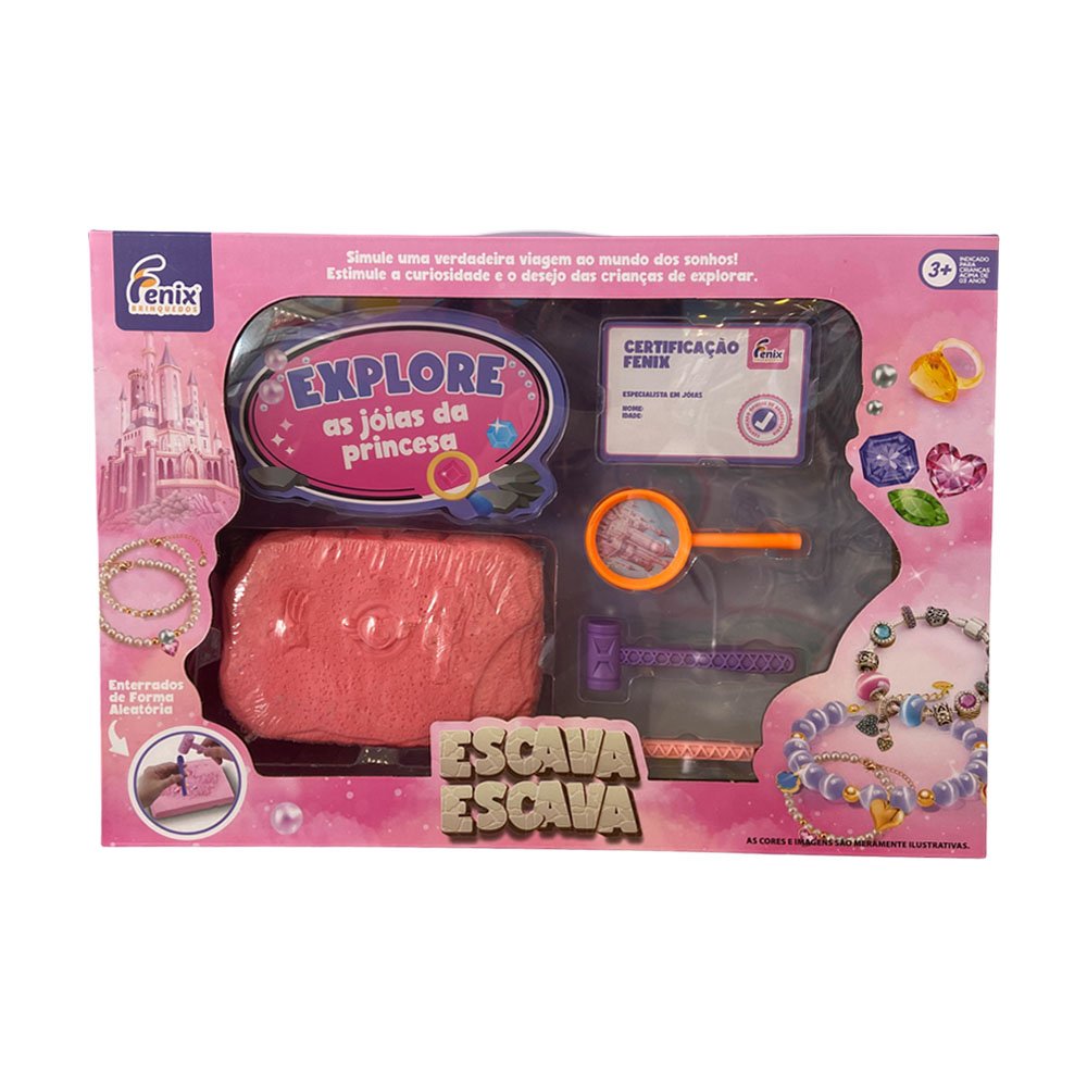 Prepare-se para uma aventura cheia de brilho e fantasia! Com o Escava Escava Joias de Princesa da Fenix, as crianças se transformam em verdadeiros exploradores em busca de joias escondidas. Basta escavar com cuidado para revelar pedras preciosas encantadas, tornando a brincadeira ainda mais mágica. Uma atividade divertida e interativa que estimula a curiosidade, a coordenação motora e o espírito aventureiro desde cedo!