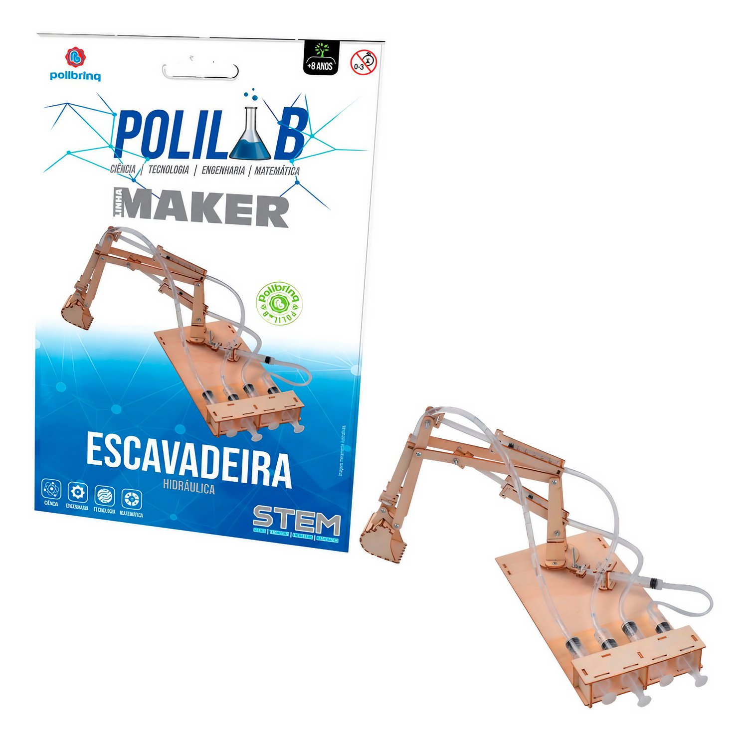 Escavadeira Hidráulica Em Madeira Polilab Maker Polibrinq