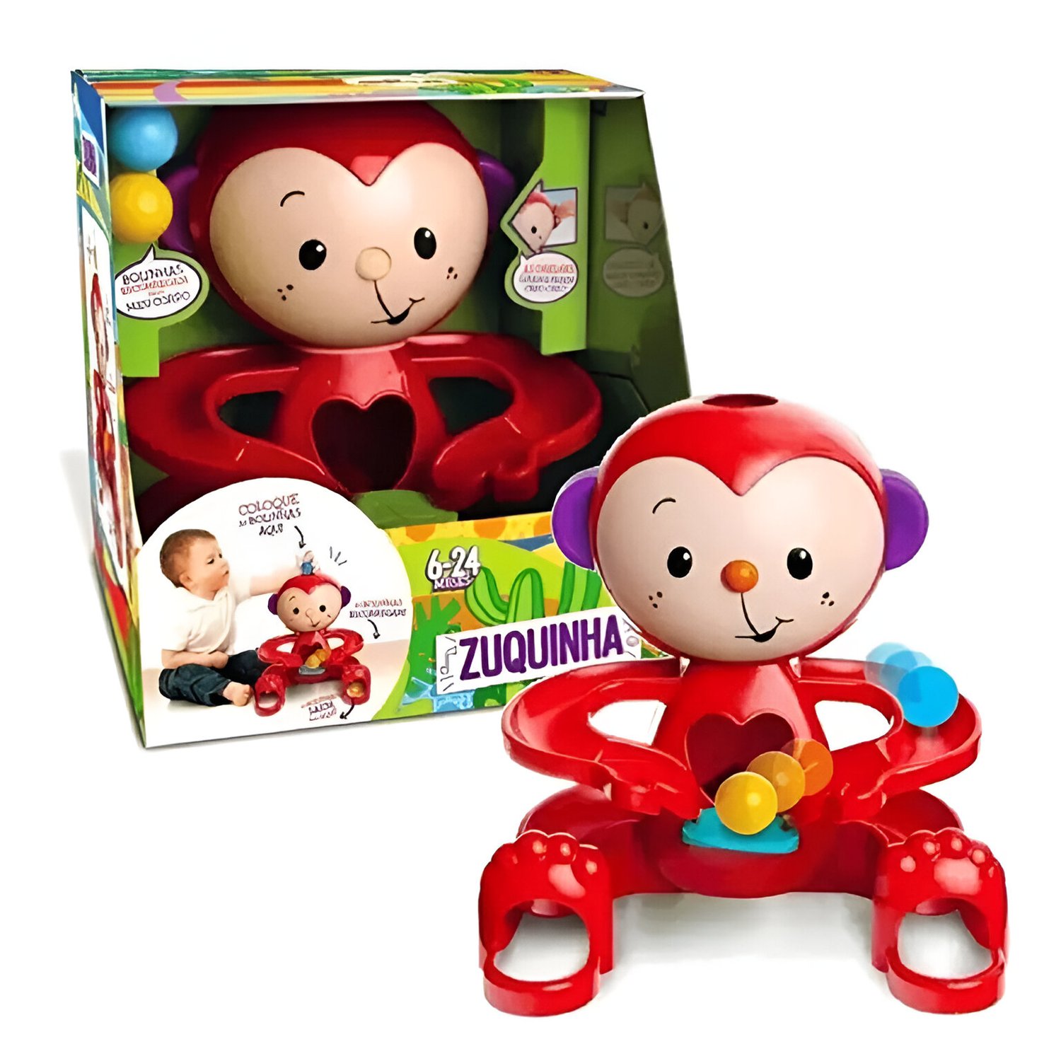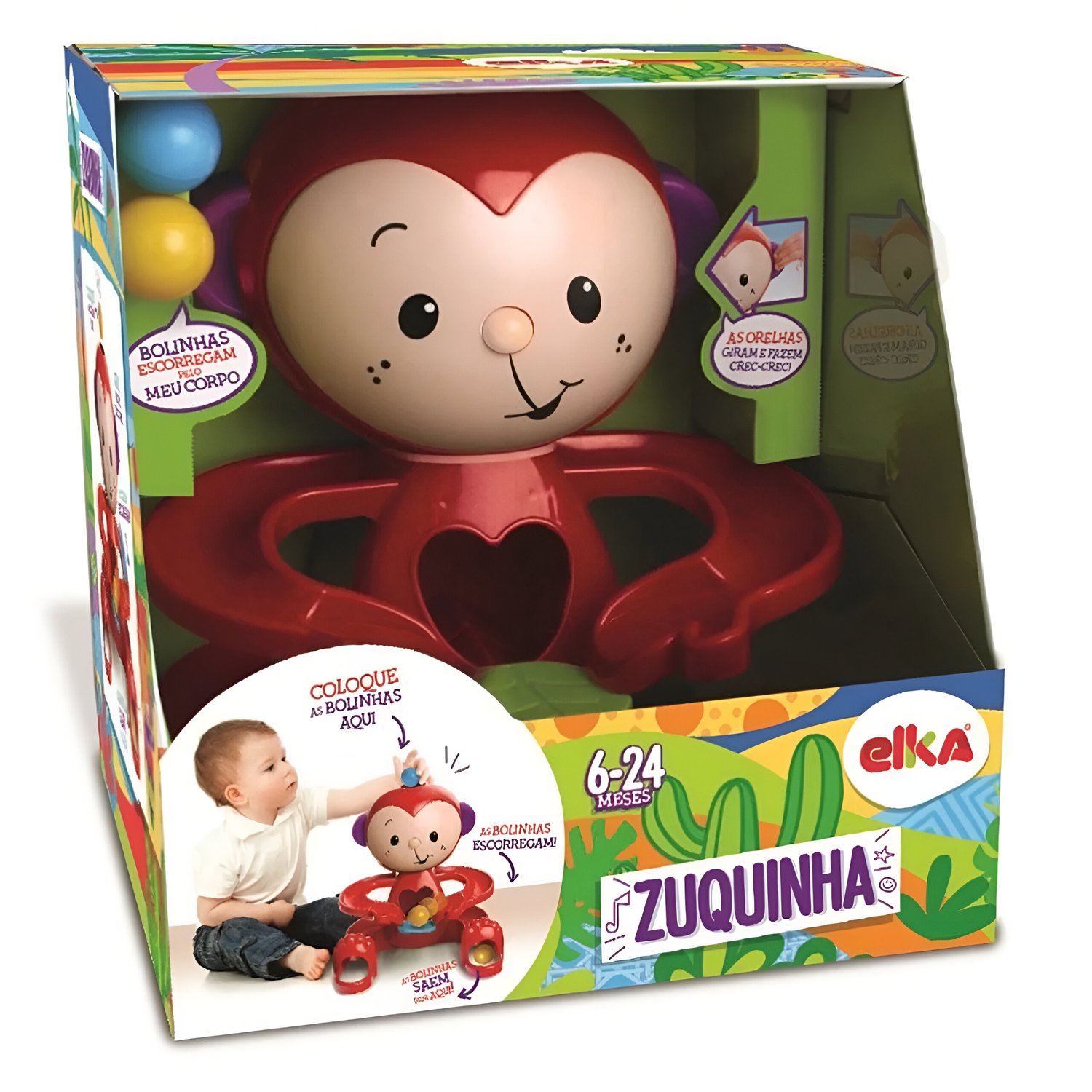 Diversão e surpresa com o Macaco de Atividades Zuquinha Escorrega Bolinha da Elka! Esse simpático macaquinho vai encantar bebês de 6 a 24 meses com bolinhas que percorrem um caminho inesperado: entram pela cabeça, passam pelos braços, barriga e escorregam até os pés! As orelhas giratórias com som “crec-crec” tornam a brincadeira ainda mais interativa, estimulando os sentidos dos pequenos. E mais: a embalagem vira teatrinho de dedo com 4 personagens para recortar!