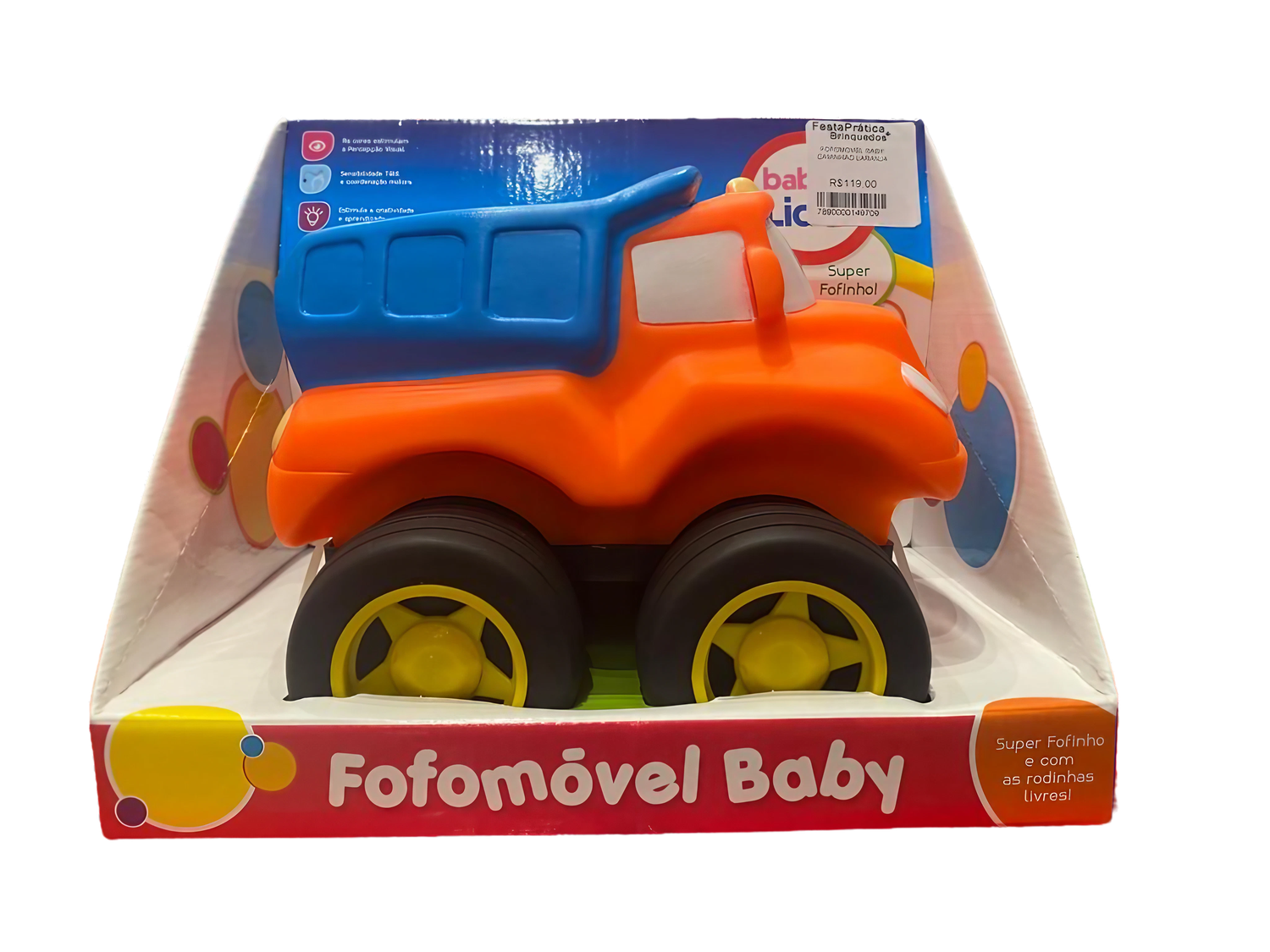 Material Seguro e Flexível: Produzido em vinil atóxico e super flexível, o Carrinho Fofomóvel LaranjaF oferece segurança durante as brincadeiras.