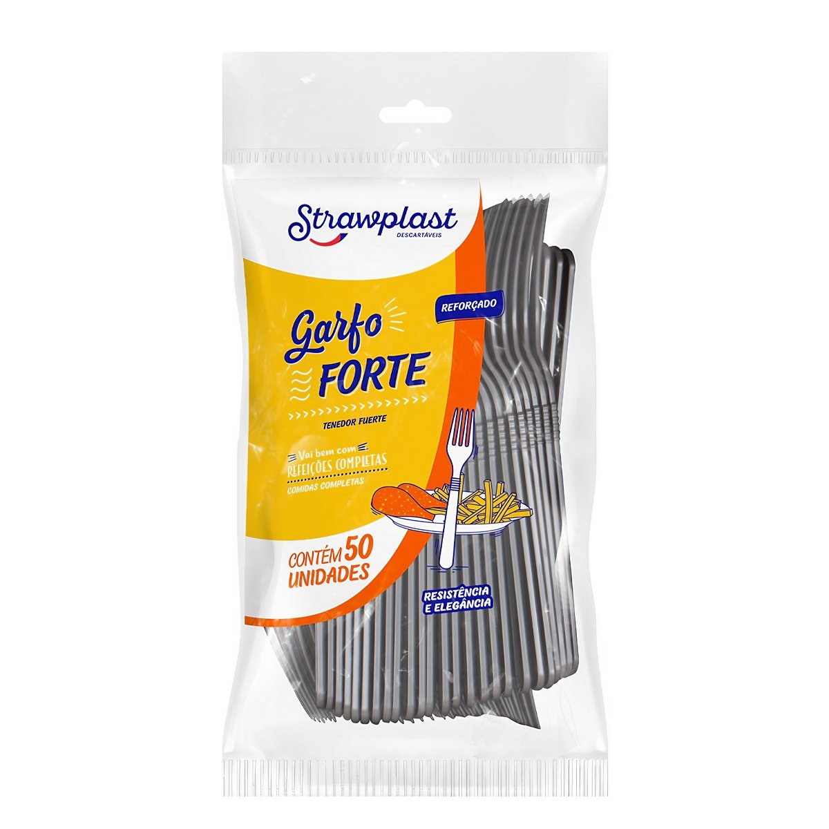 - 1 Pacote contendo 50 Garfos Forte Refeição Strawplast.