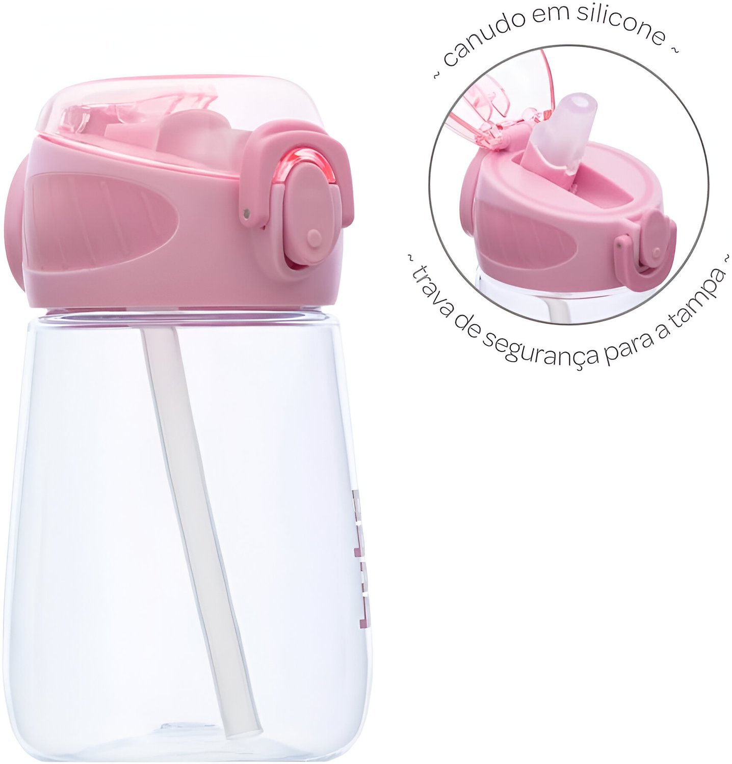 - Canudo de Silicone: Macio e seguro para as crianças, fácil de higienizar.