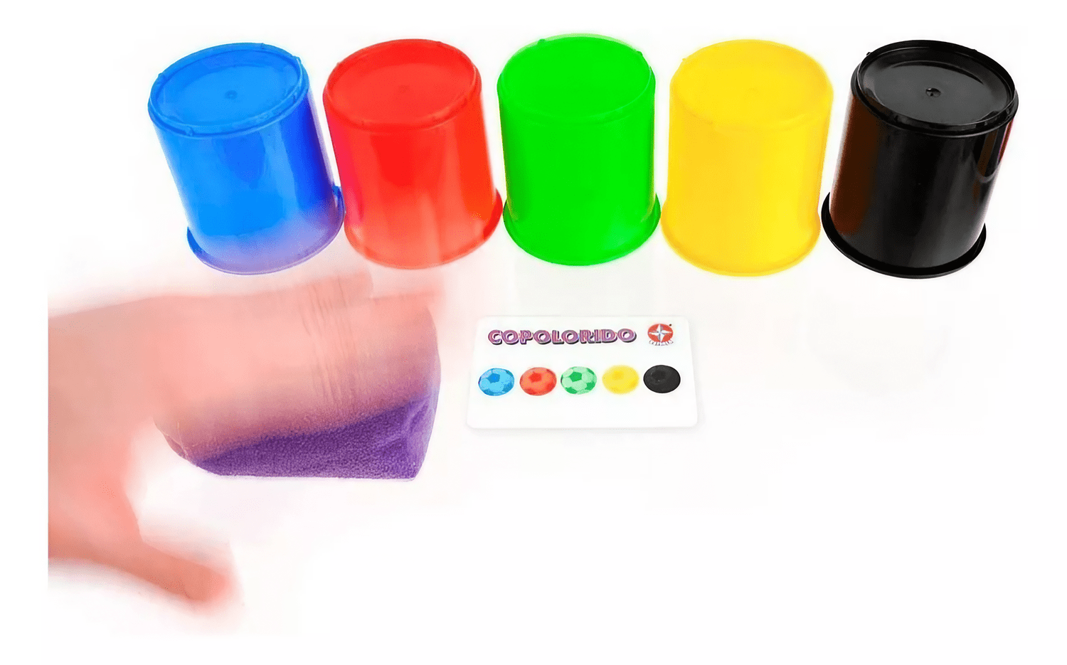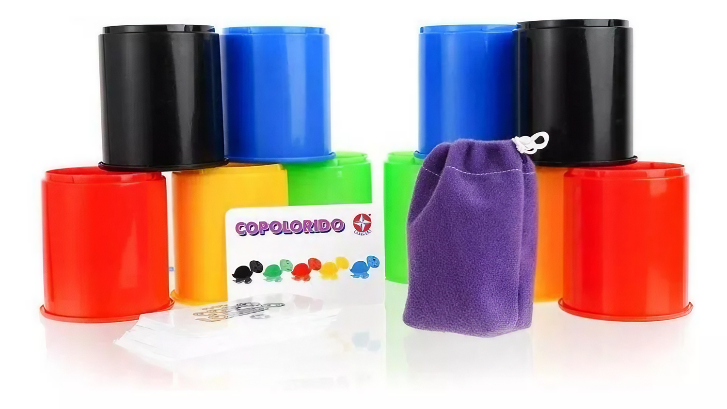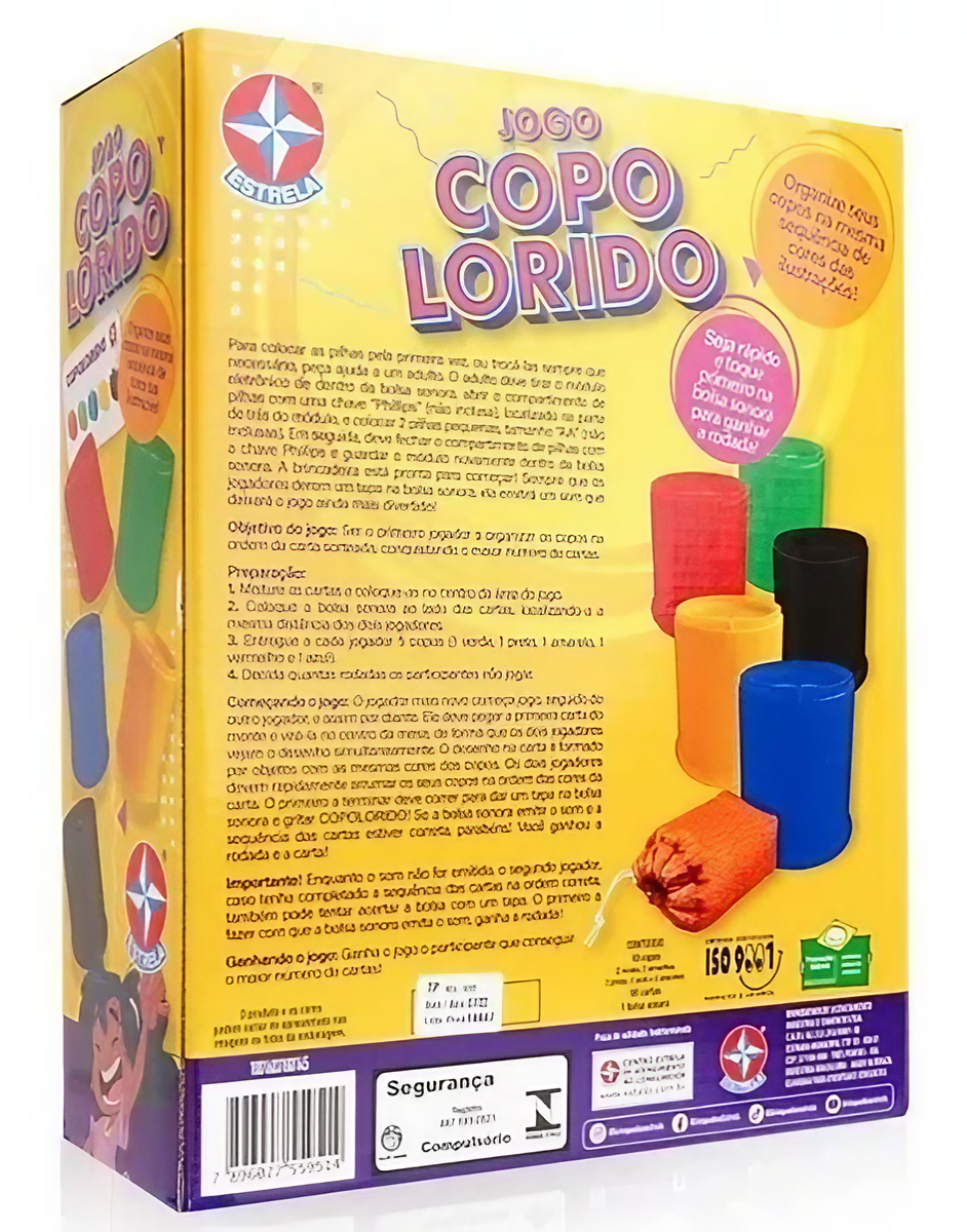 Entre na ação emocionante com o Jogo Copolorido! Este jogo de agilidade coloca os jogadores em uma disputa para organizar seus copos na sequência exata das cores mostradas na carta sorteada. O primeiro a completar a sequência deve rapidamente tocar na bolsa sonora e gritar "COPOLORIDO!" para vencer a rodada. Cada vitória garante uma carta, e o jogador que acumular mais cartas é o grande vencedor. Com desafios rápidos e divertidos, o Copolorido é perfeito para garantir diversão para toda a família. Necessita de 2 pilhas AA (não incluídas) para funcionar.