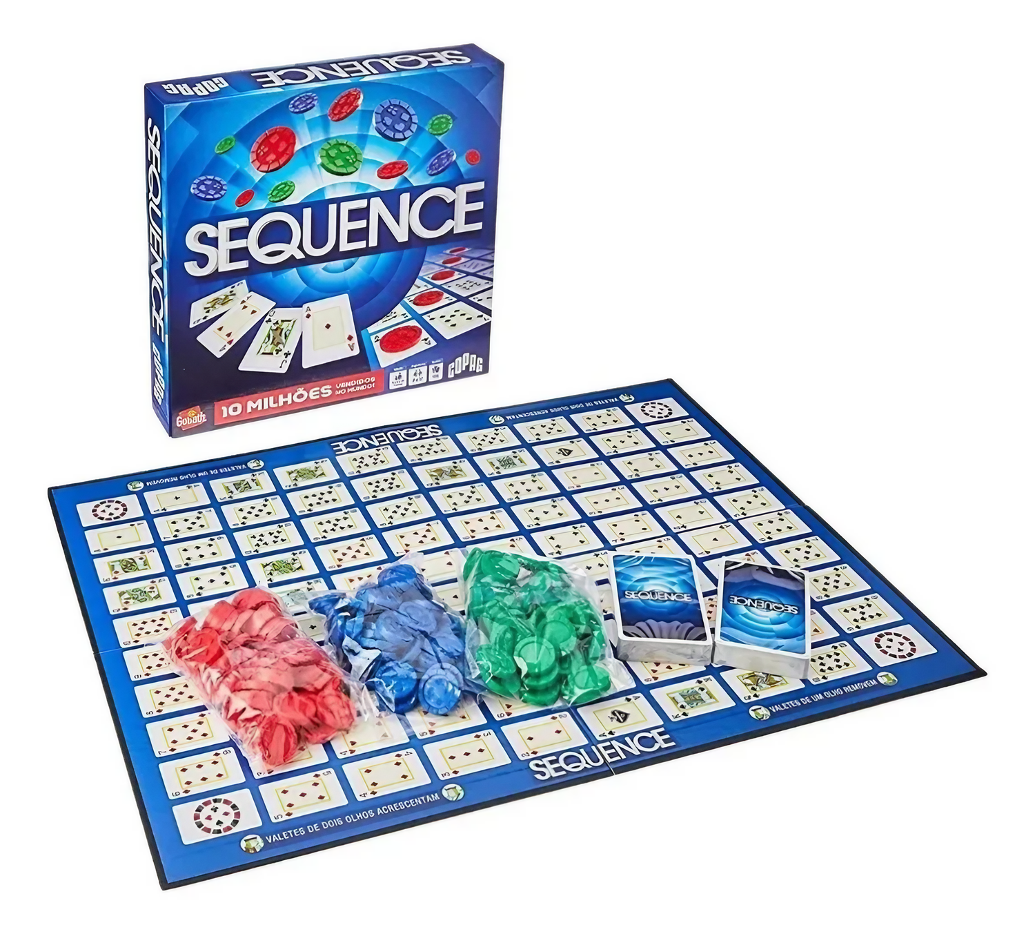 Conquiste a vitória no Jogo Sequence e prove que você tem o que é preciso para vencer! Seja rápido, estratégico e divirta-se com este clássico dos jogos de tabuleiro.