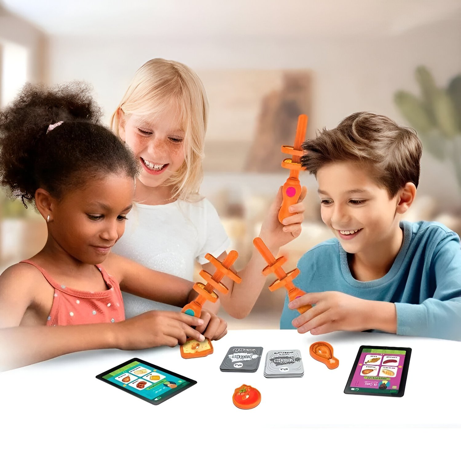 - Componentes variados: inclui espetos, ingredientes, cartas, sineta e muito mais.