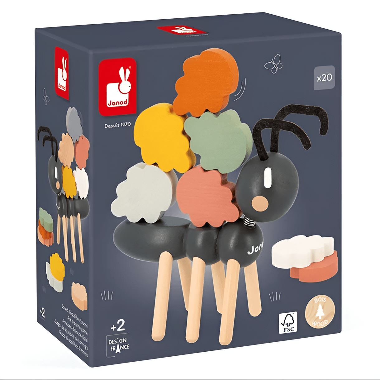 Prepare-se para um desafio divertido e educativo com o Jogo de Equilíbrio Formiga Sweet Cocoon da Janod! Um brinquedo de madeira encantador que estimula crianças a partir de 2 anos a desenvolverem habilidades motoras, concentração e raciocínio lógico enquanto equilibram folhas coloridas nas costas de uma simpática formiga.