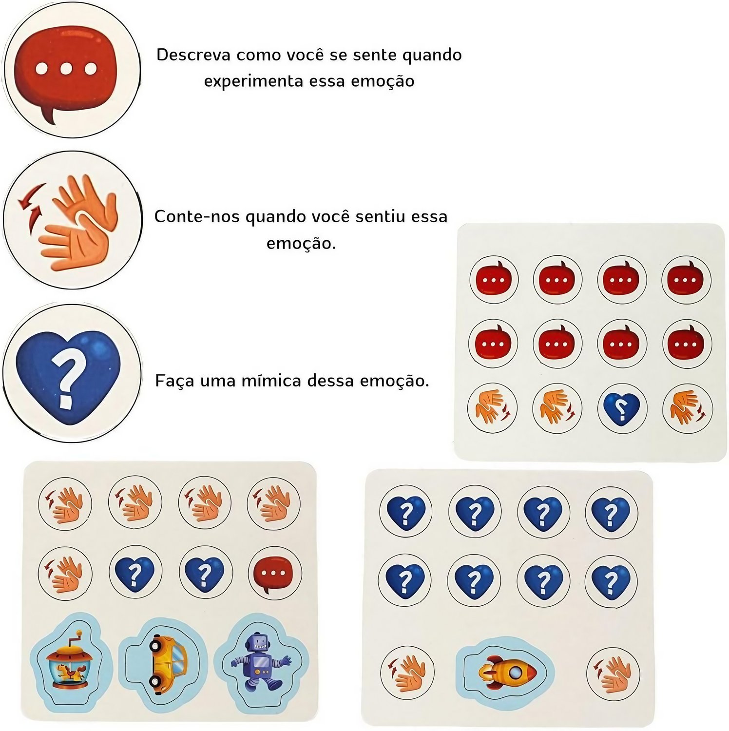 Reconhecimento Emocional: O jogo estimula as crianças a reconhecerem uma variedade de emoções, desde o orgulho até o medo, permitindo uma compreensão mais profunda de seus sentimentos.