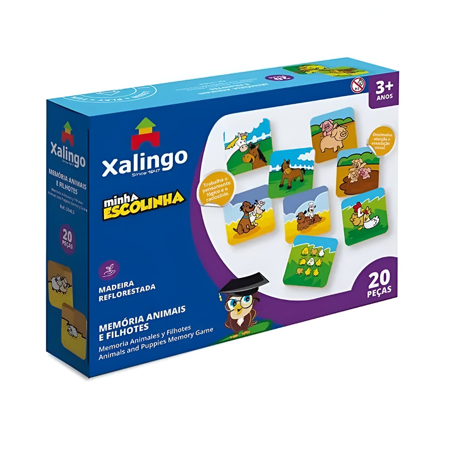 Memória, aprendizado e muita diversão! O Jogo da Memória Animais e Filhotes Minha Escolinha da Xalingo é a escolha ideal para entreter e educar os pequenos com carinho e criatividade. Com 20 peças ilustradas, o jogo convida as crianças a associarem animais e seus filhotes de forma lúdica, desenvolvendo habilidades como atenção, percepção visual e raciocínio lógico. Perfeito para tornar o aprendizado mais leve e divertido desde cedo!
