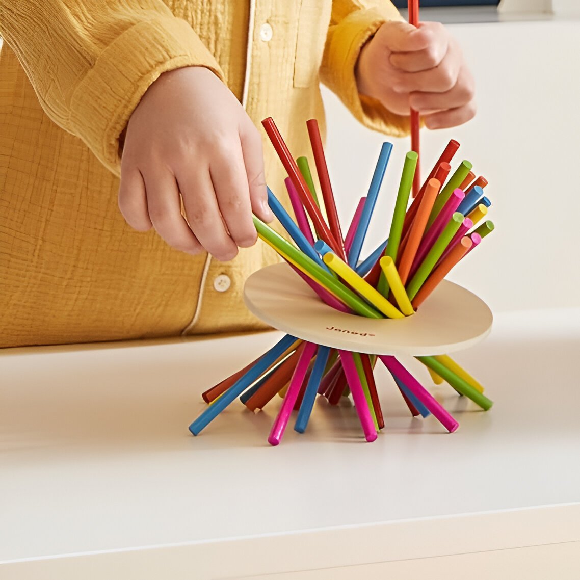 - Jogo de destreza e equilíbrio: Estimula a concentração e o autocontrole.